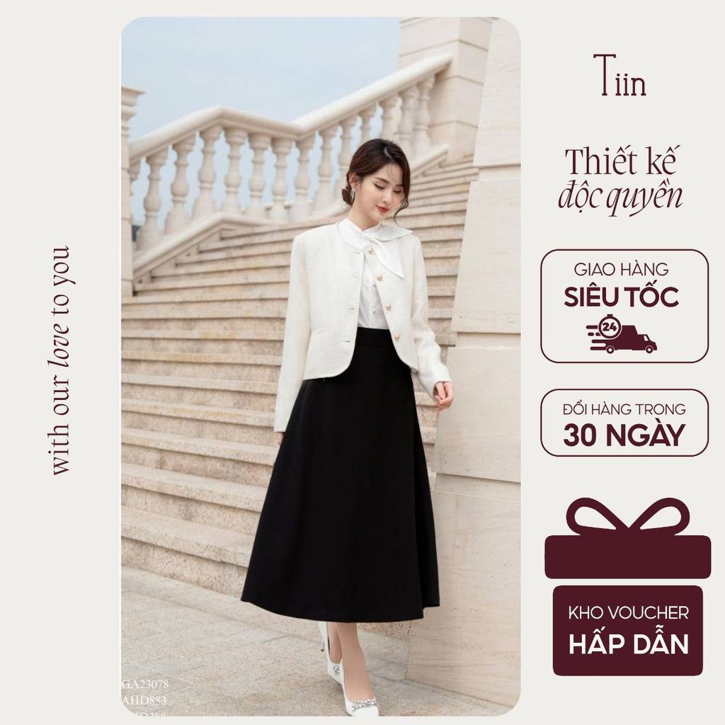 TIINSTORE Chân váy dáng dài xoè A túi sườn CHD288