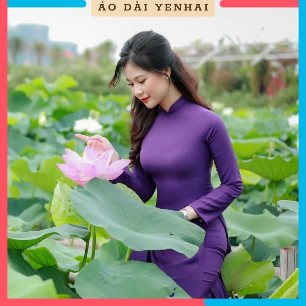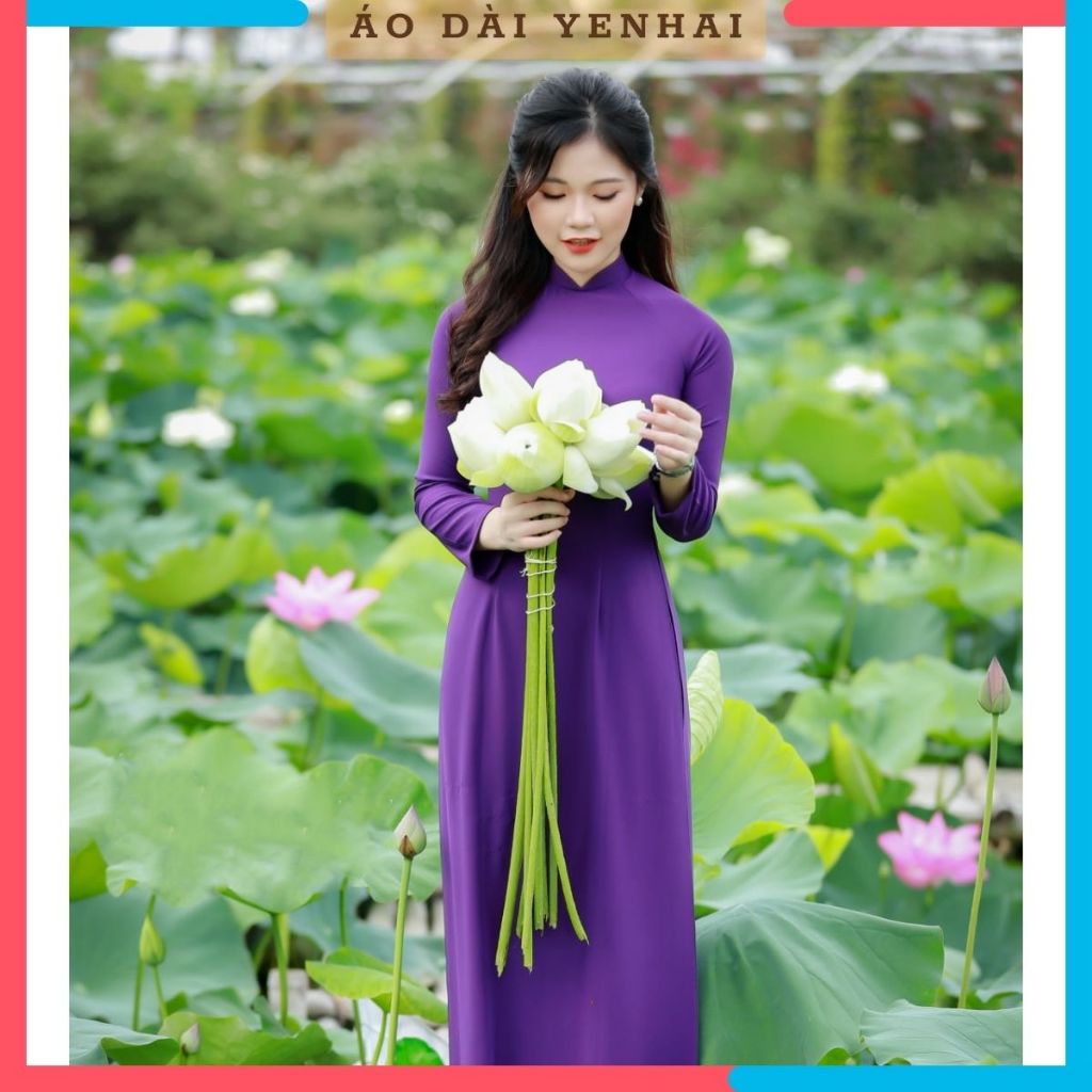 Áo dài Truyền thống màu tím huế chất lụa Mỹ cao cấp dáng 2 tà | B8