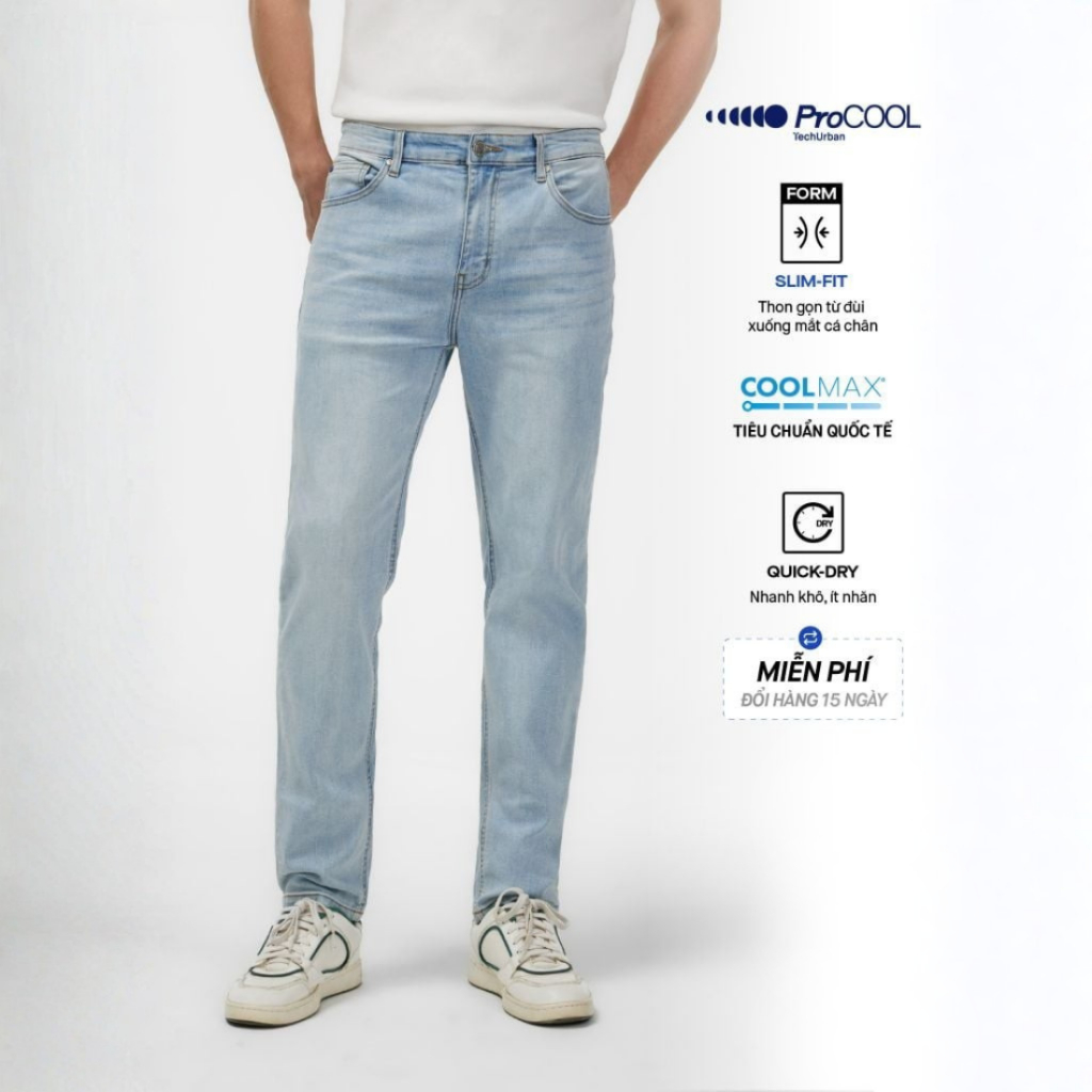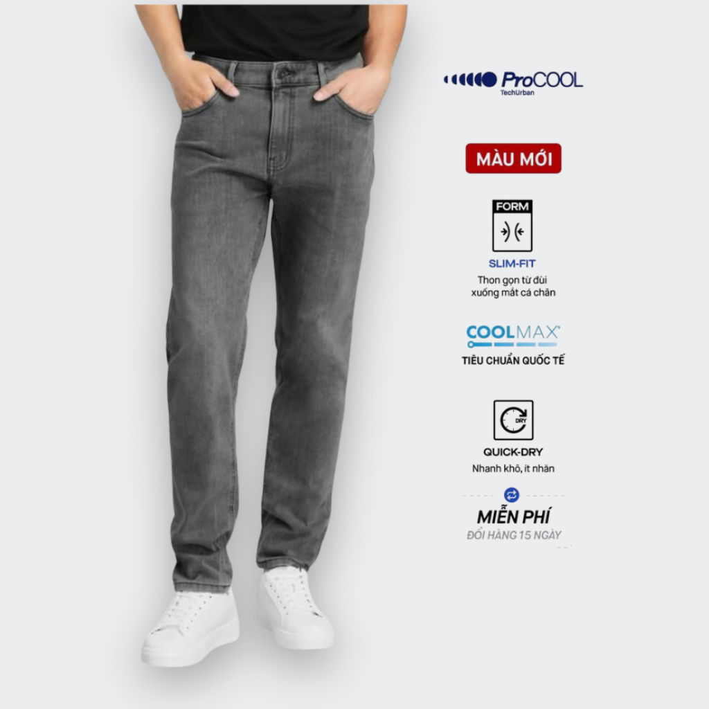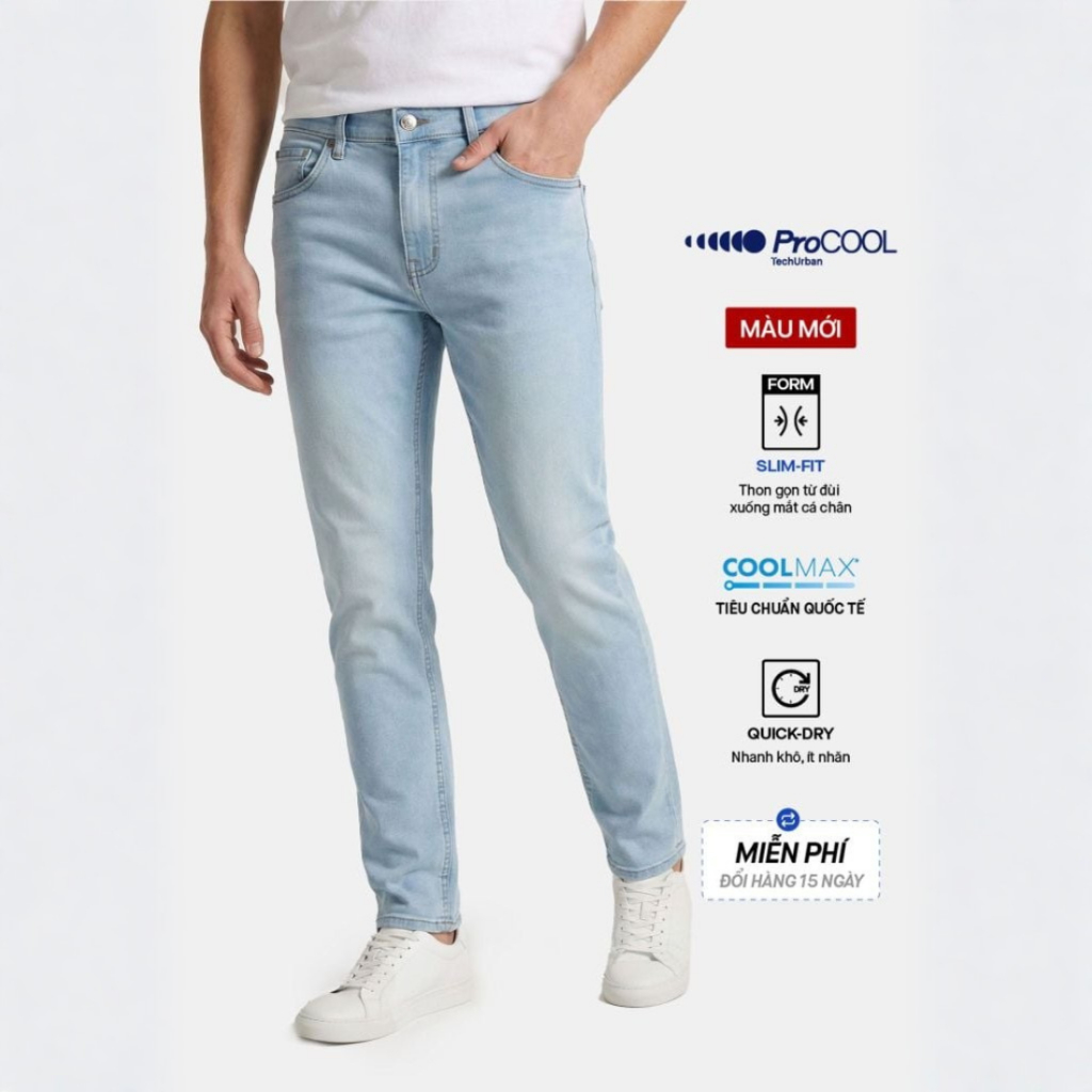 Quần jeans nam PROCOOL ICONDENIM, quần bò form slimfit ôm vừa vặn, công nghệ vải Coolmax mát lạnh, mềm mịn, thoải mái