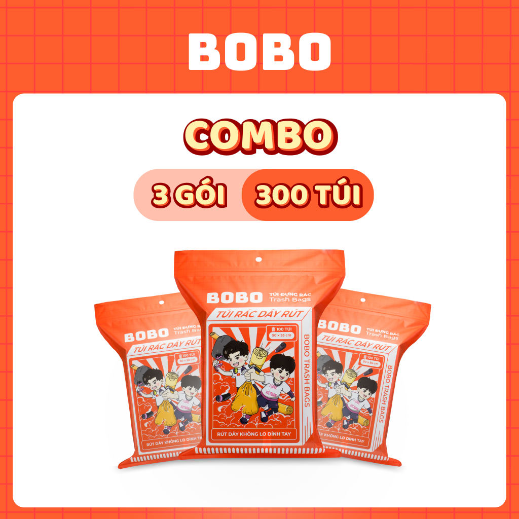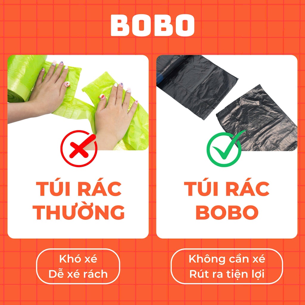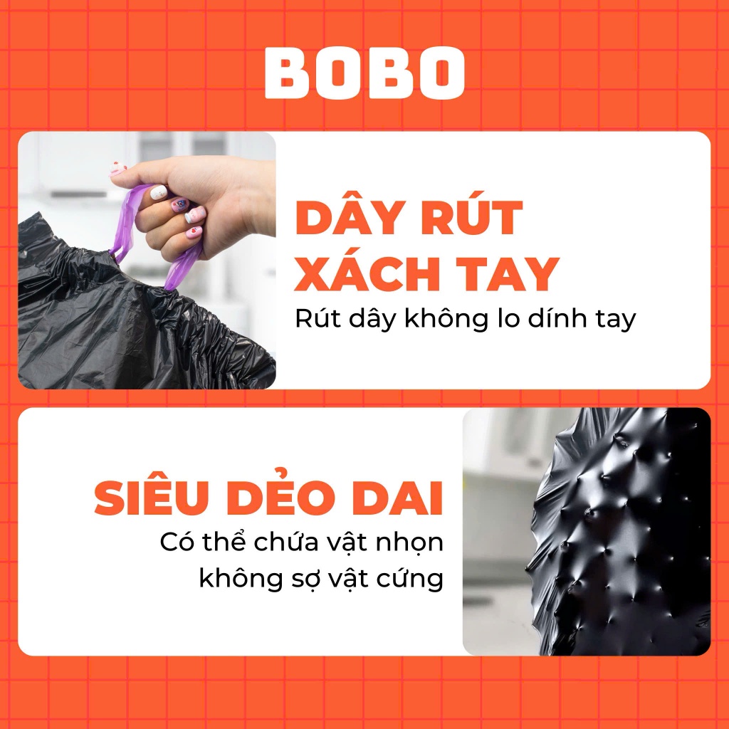Túi rác BoBo túi đựng rác có dây rút tự phân huỷ bịch 5 cuộn 100 túi size 50x55cm túi bịch đựng rác có quai