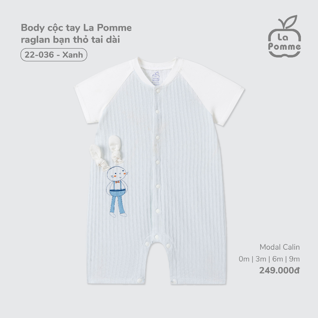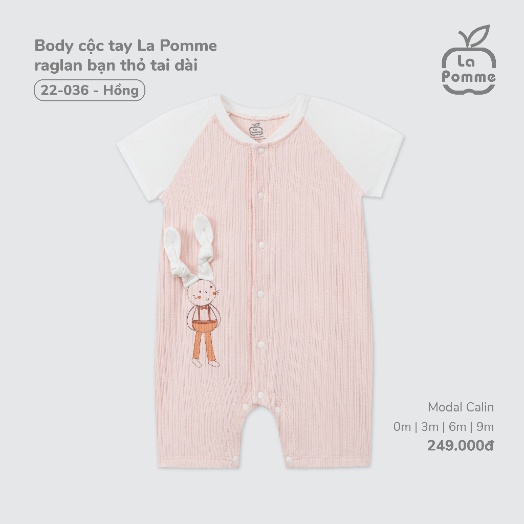 Body cộc tay La Pomme raglan bạn thỏ tai dài