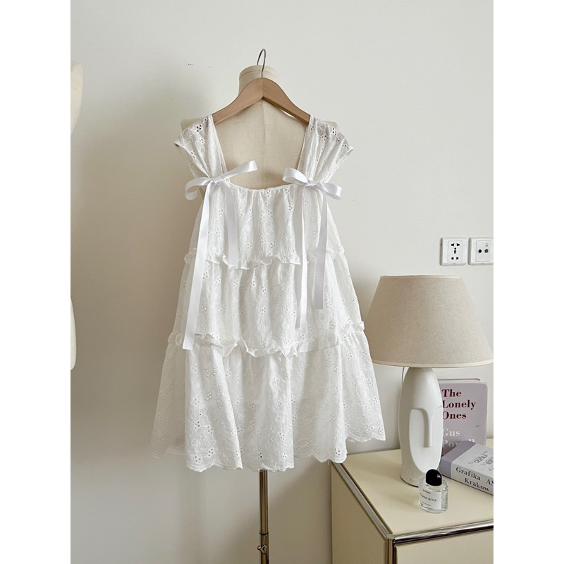 [NEW]Áo babydoll sát nách ren xô thêu đục lỗ”Cloudy Top” style Ulzzang