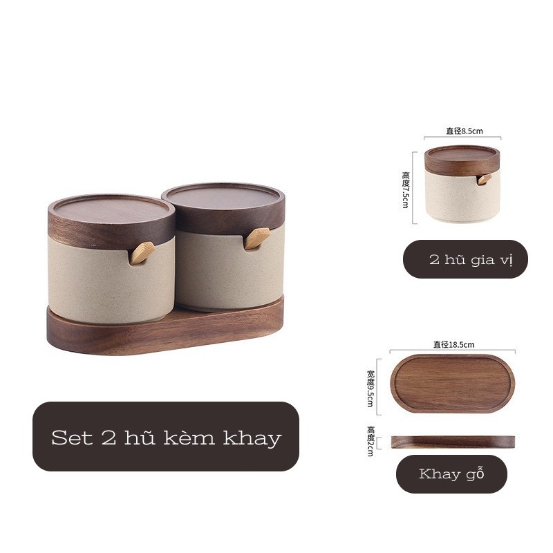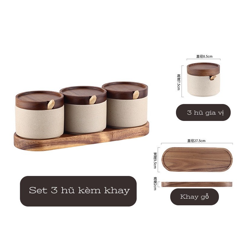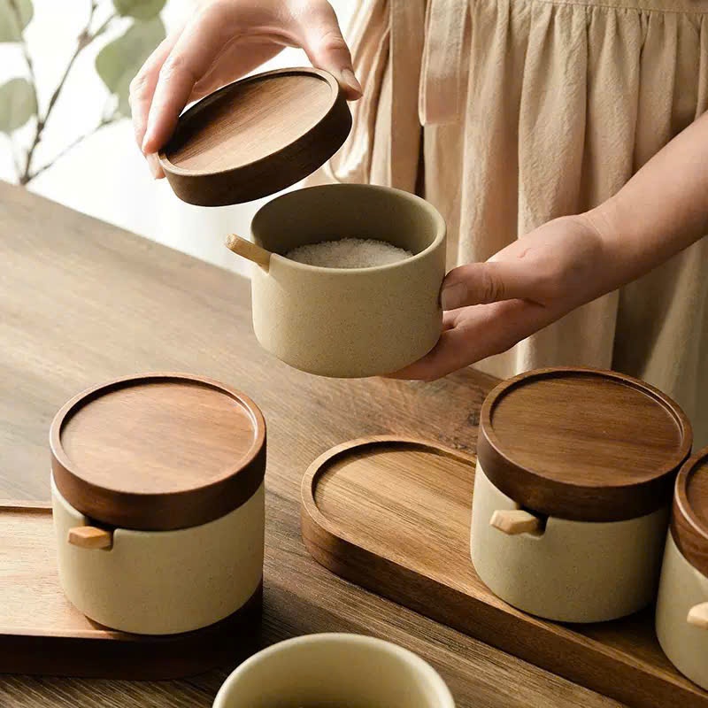Bộ Hũ Đựng Gia Vị Bằng Gốm Sứ Phong Cách Nhật Bản Kèm Muỗng Decor Nhà Bếp