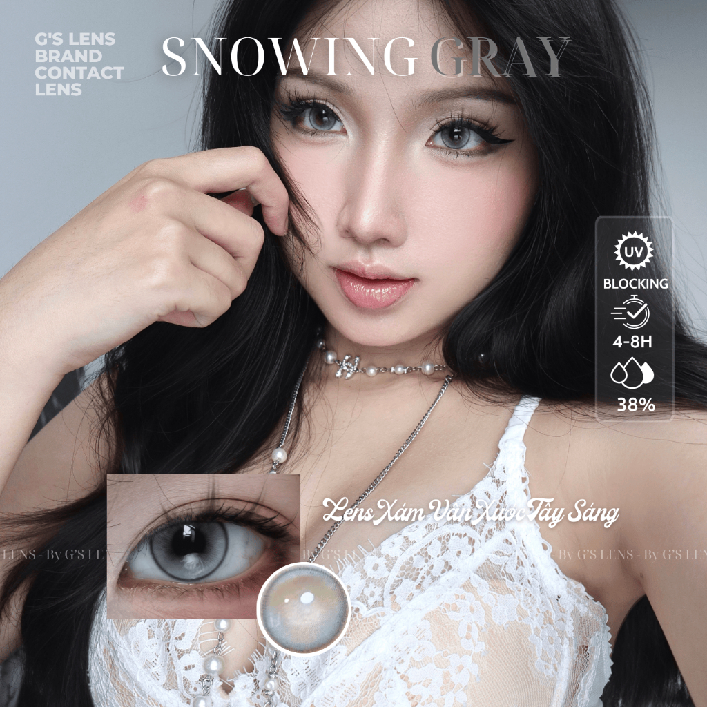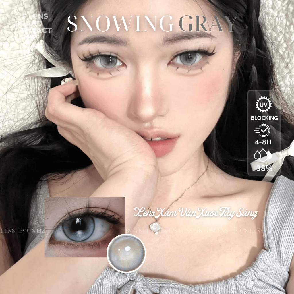 Kính áp tròng SNOWING GRAY xám vân xước tây sáng G.DIA 14.2mm 0-8 độ (Lens Trung)