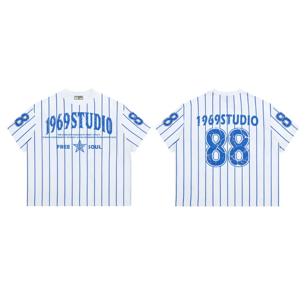 Áo Thun Boxy Kẻ Sọc 1969STUDIO Áo Phông Unisex Top Menswear Cổ Tròn - BX09