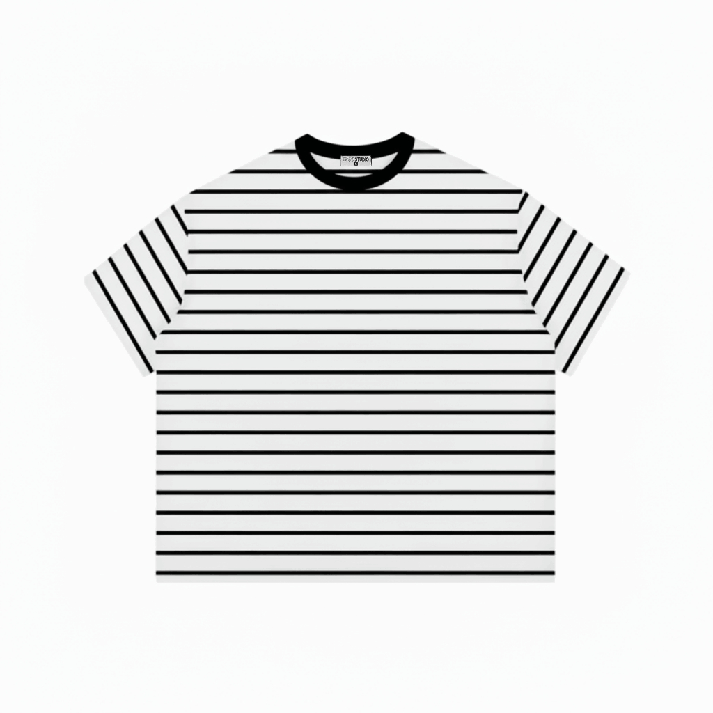 Áo Thun Boxy Vải Sọc 1969STUDIO Áo Phông Unisex Top Menswear Cổ Tròn - BX11