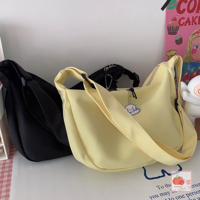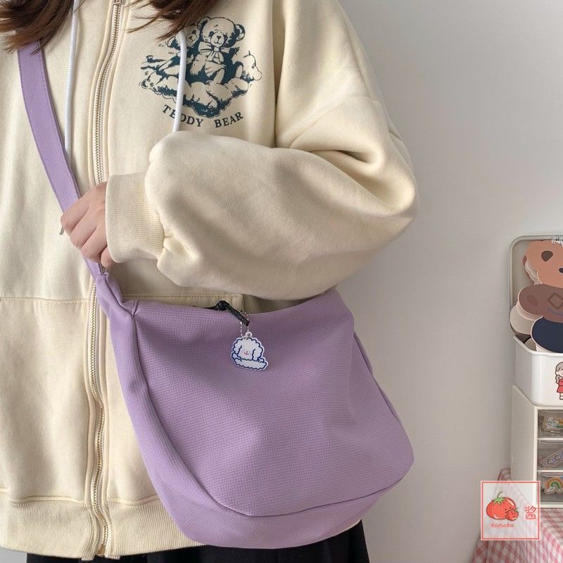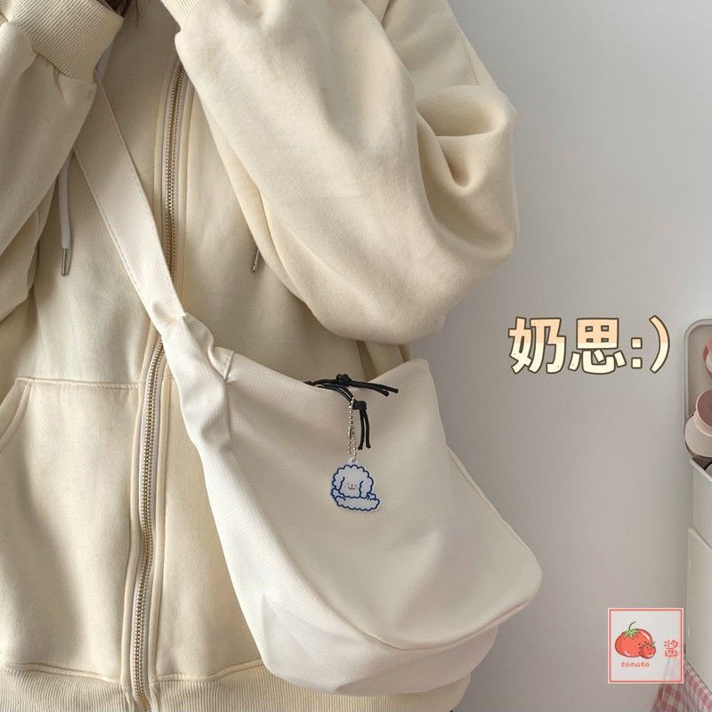 Phiên Bản Hàn Quốc Của Sinh Viên Hoang Dã Ins Nhật Bản Bông Tai Kẹp Đơn Giản Túi Đeo Vai Văn Học Thông Thường Túi Đựng Bánh Bao Màu Trơn