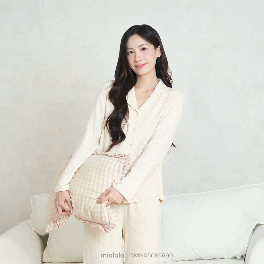 Mialala [BST ẤM] Bộ Mặc Nhà Tay Dài Quần Dài 5990 Màu Vàng Họa Tiết Kẻ Caro Chất Liệu Dày Dặn Ấm Áp
