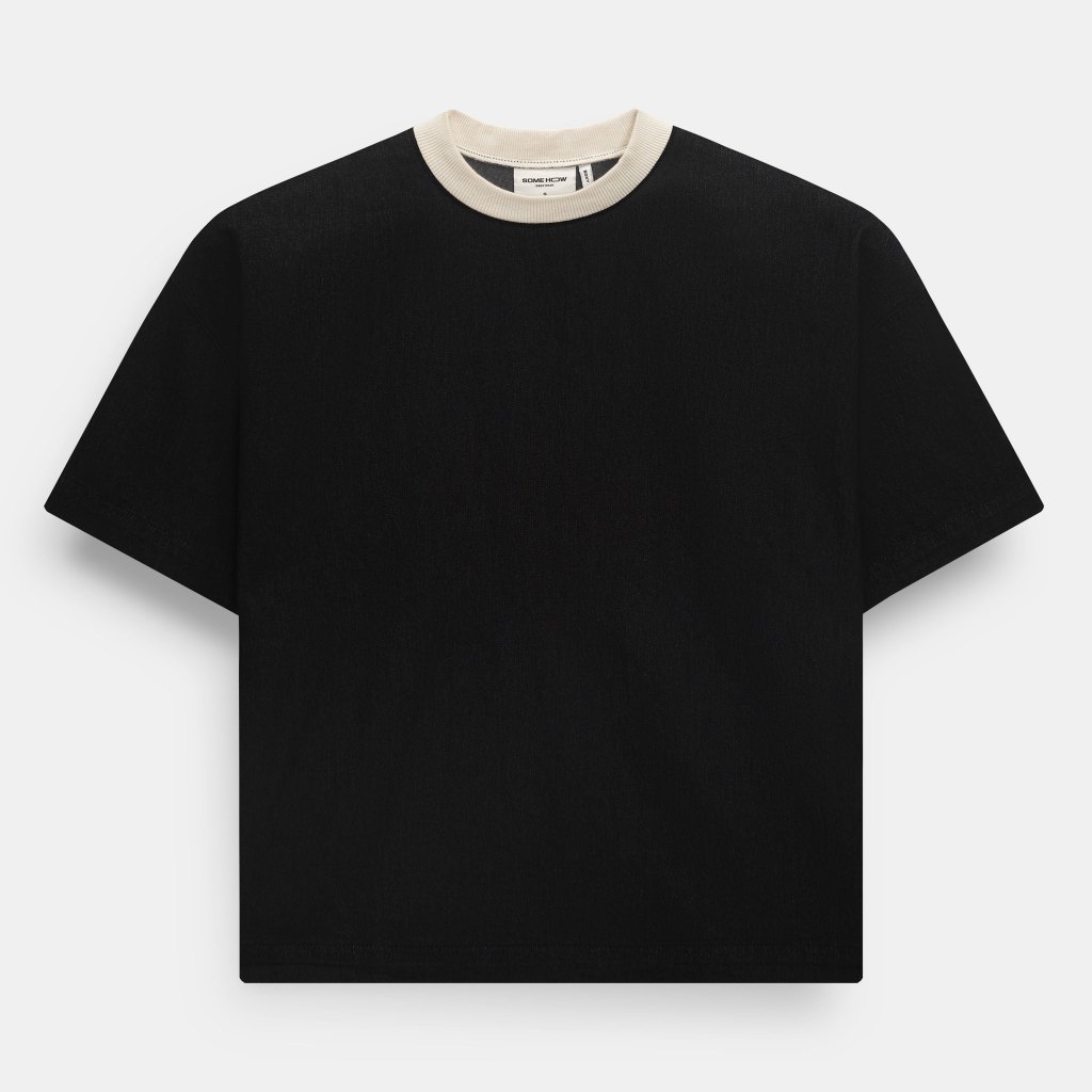 [N] Áo Thun Boxy Denim Wash Enzyme Phối Bo Vải Denim Thoải Mái Vững Chắc, AT0351 SOME HOW STORE
