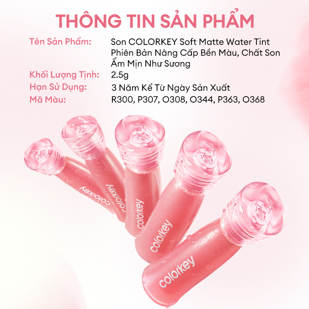 [Mới] Son Colorkey Watery Tint Phiên Bản Mới Bền Màu Lâu Trôi, Không Dính Cốc, Siêu Mịn Môi 2.5g