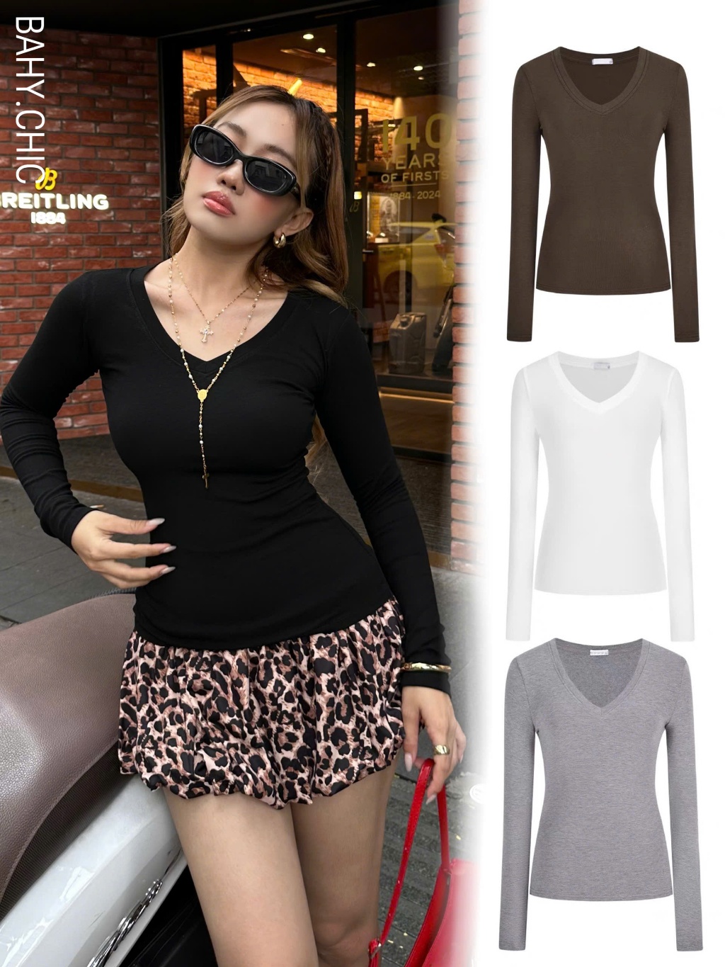 ( V-SHIRT) Áo cổ chữ V tay dài, đơn giản phong cách hằng ngày | BAHYCHIC