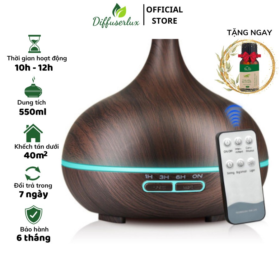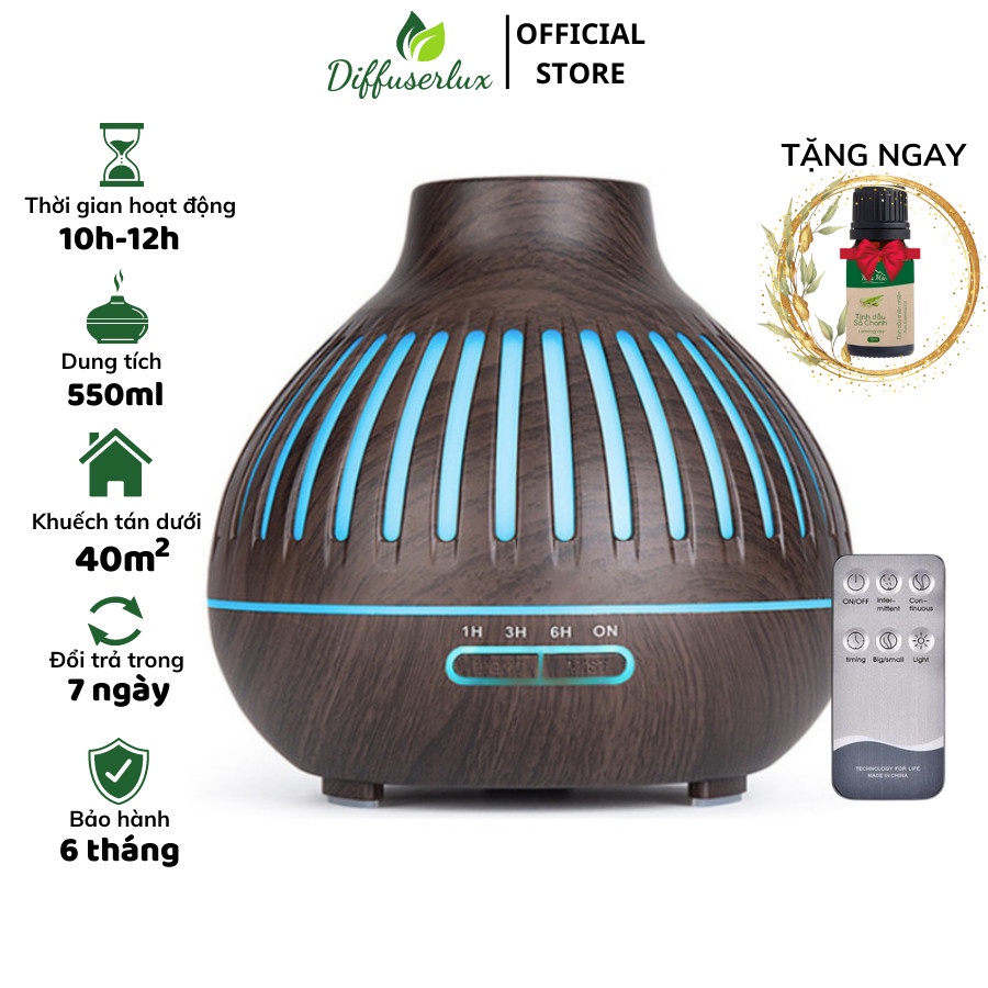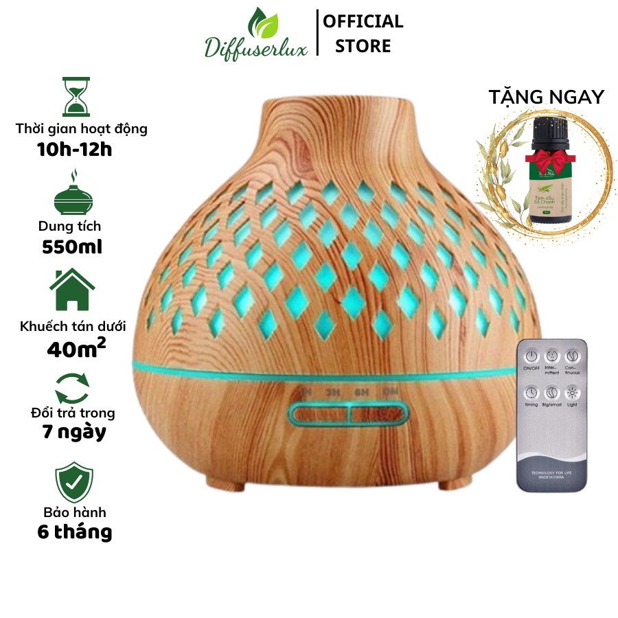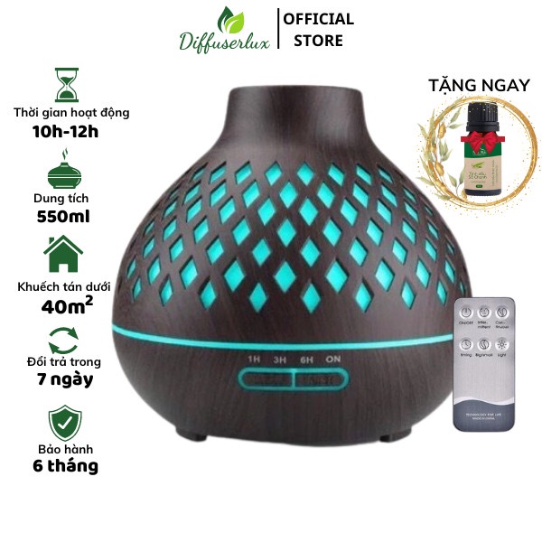 Máy xông tinh dầu đèn lồng lưới 550ml có đèn led 7 màu khuếch tán phun tinh dầu - DIFFUSER LUX
