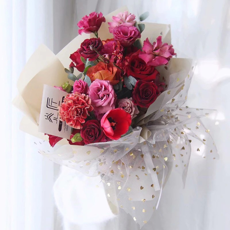 Lưới voan gói hoa hình tim - Sao vàng - Giấy gói hoa-lưới gói hoa 50cm x 4,5met