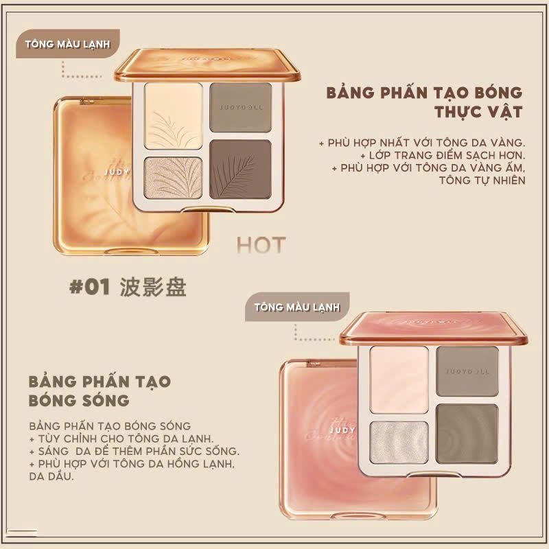 Phấn Tạo Khối Và Bắt Sáng 4 Ô JUDYDOLL Highlight & Contour Palette Chính Hãng - Bebeau