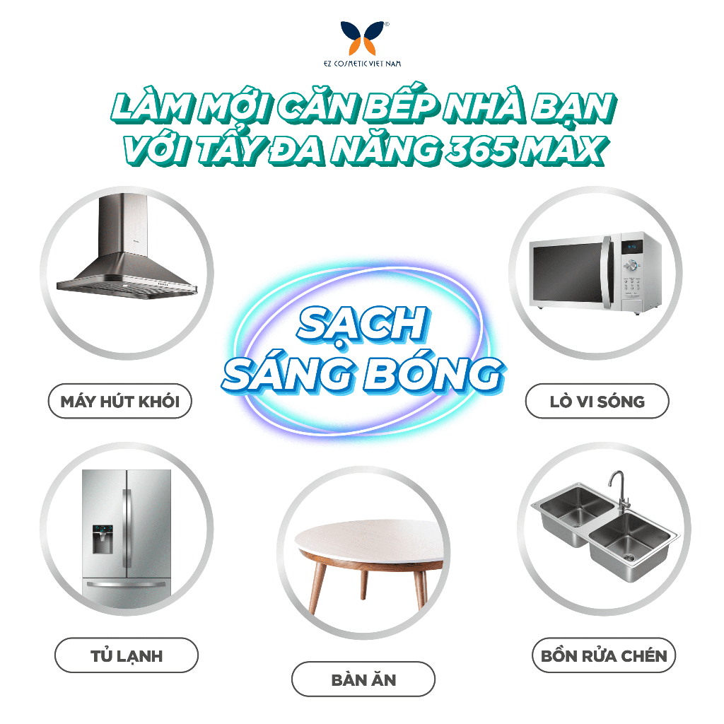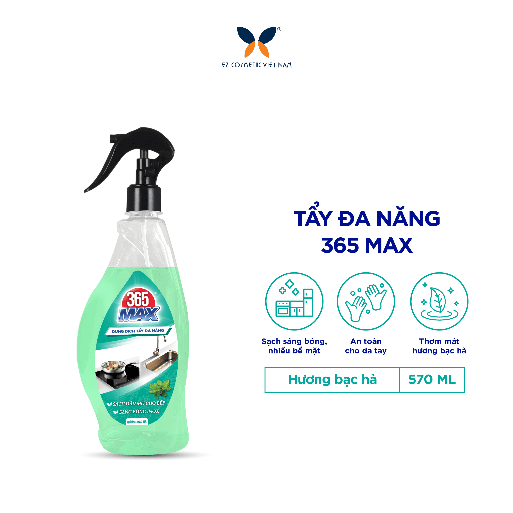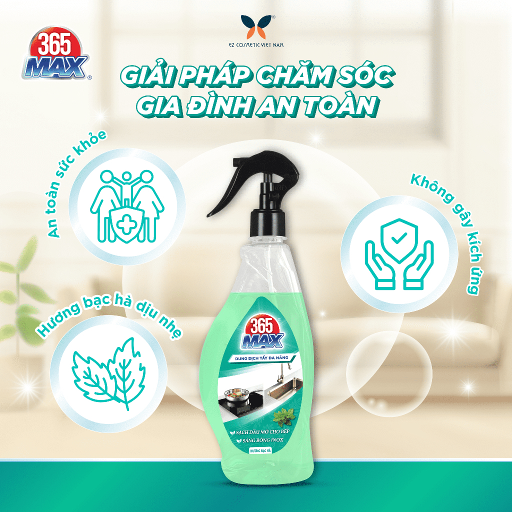 Xịt Tẩy Đa Năng 365 Max 570ml Hương Bạc Hà - Sạch dầu mỡ bếp, sáng bóng inox, sạch bóng các bề mặt