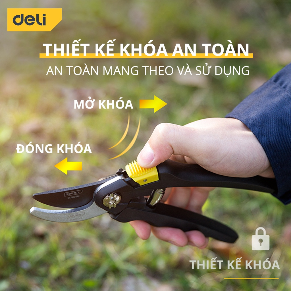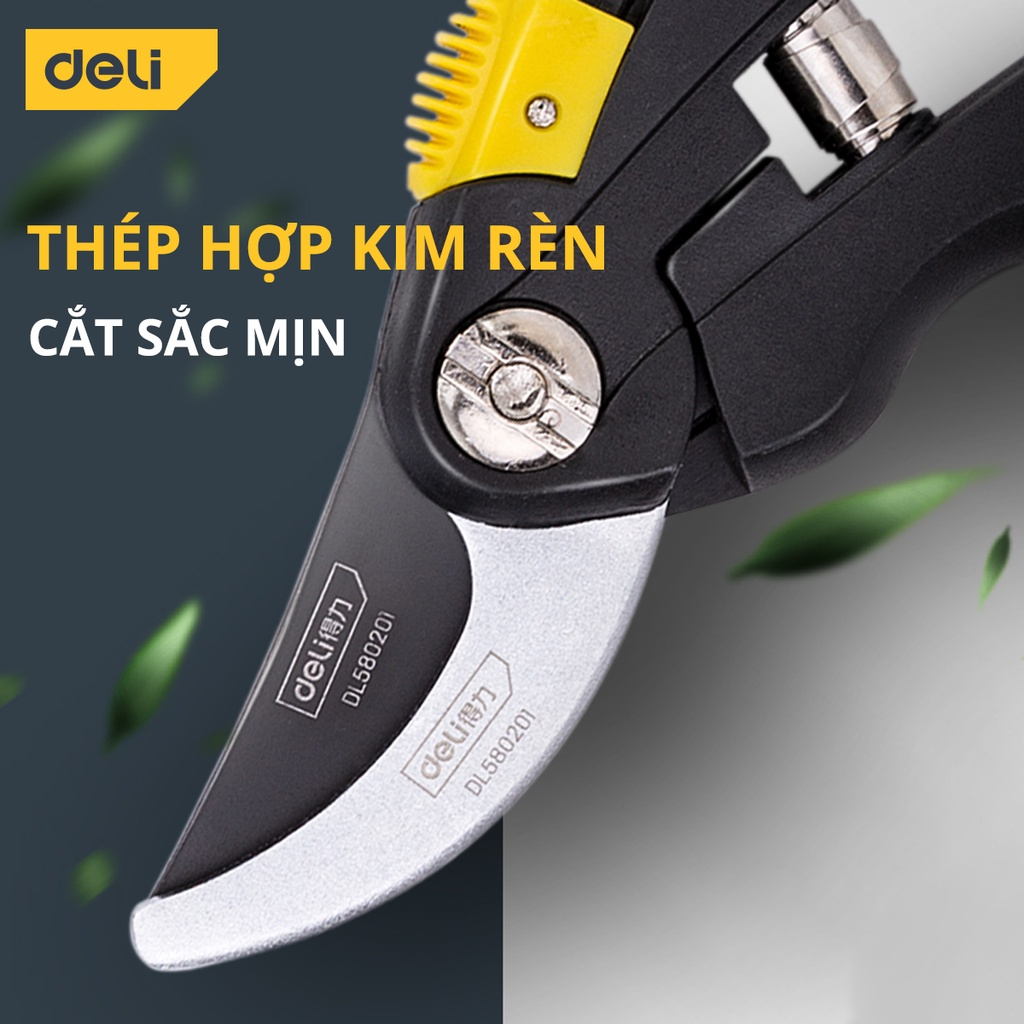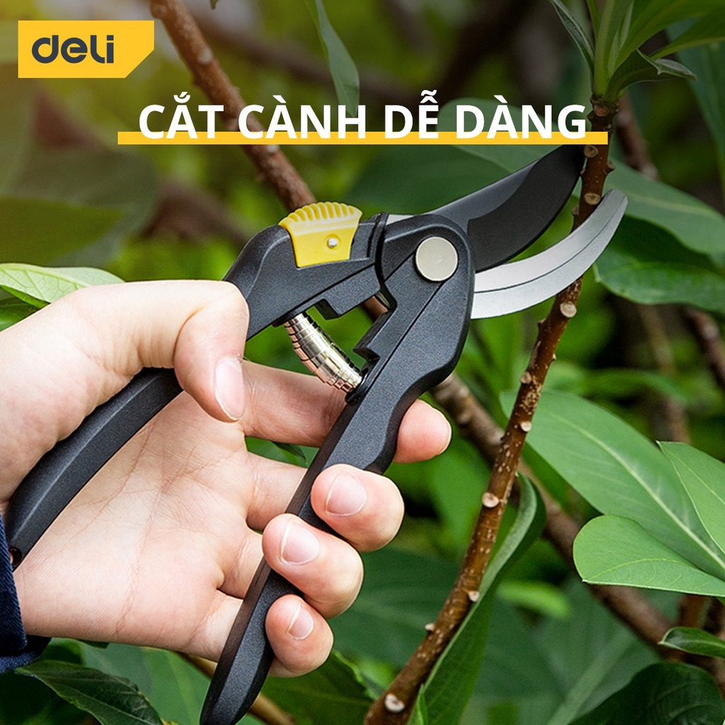 Kéo Cắt Tỉa Cành Cây Deli Chính Hãng - Lưỡi Thép Sắc Bén, Tay Cầm Đệm Cao Su An Toàn, Chắc Chắn