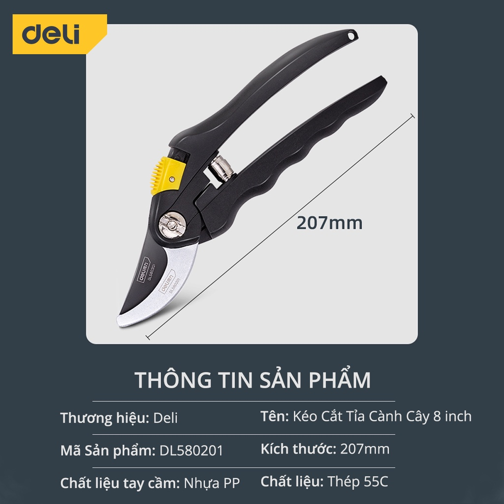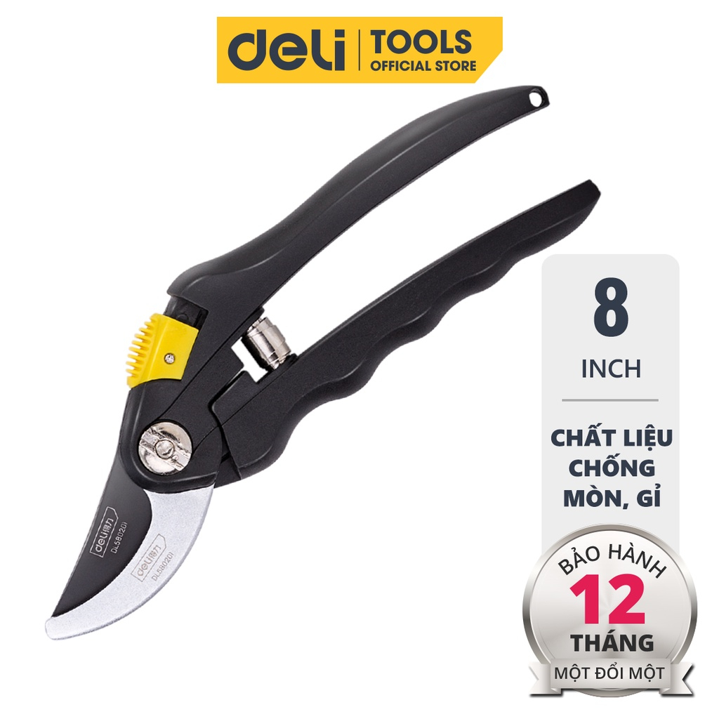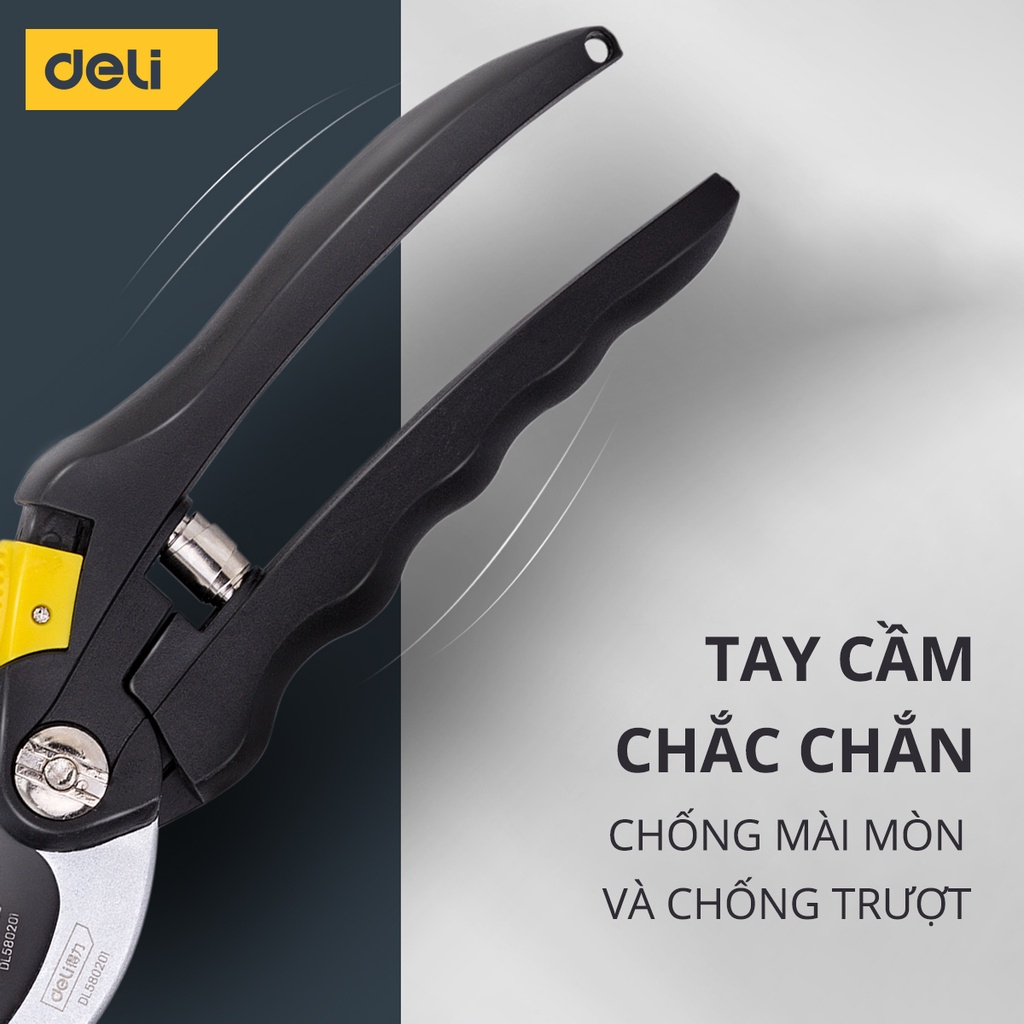 Kéo Cắt Tỉa Cành Cây Deli Chính Hãng - Lưỡi Thép Sắc Bén, Tay Cầm Đệm Cao Su An Toàn, Chắc Chắn