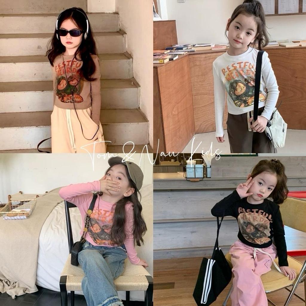 A101-[tomnaukids] Áo thun dài tay bé gái Form ÔM chất liệu cotton mềm co giãn - Size 8-35Kg
