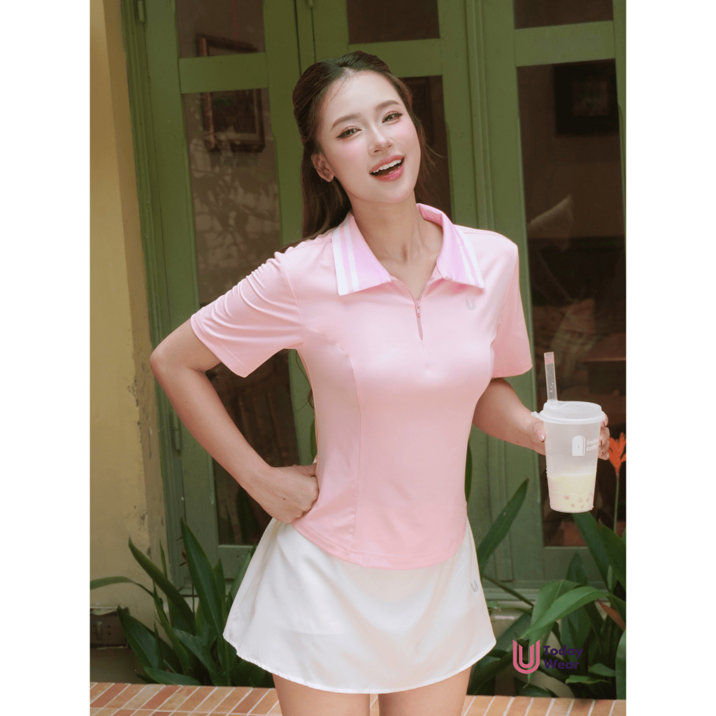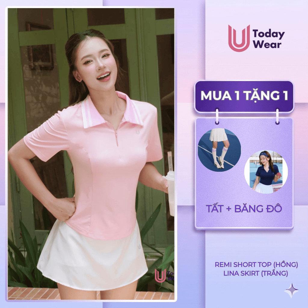 [MUA 1 TẶNG 1] Set bộ đồ thể thao nữ áo Remi hồng mix chân váy Lina trắng Today U Wear trẻ trung thoải mái vận động