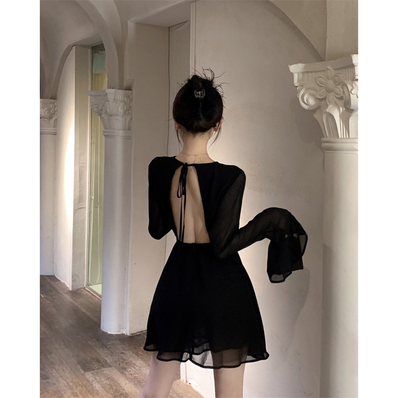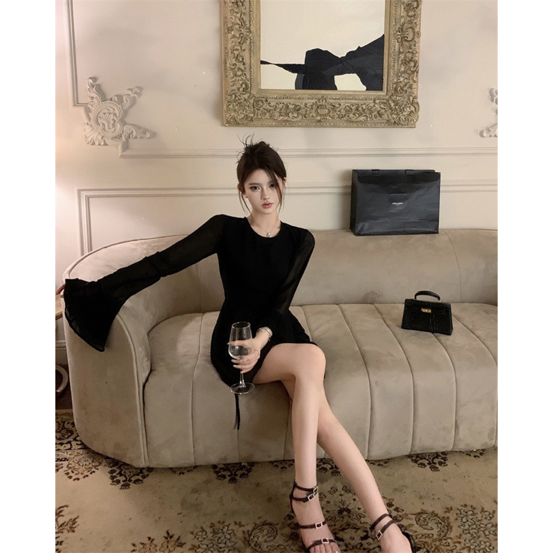 Đầm hở lưng sexy ROSE tay dài loe TABISHOP Váy nữ màu đen thiết kế sanh chảnh đi dự tiệc đi chơi siêu hottrend(36)