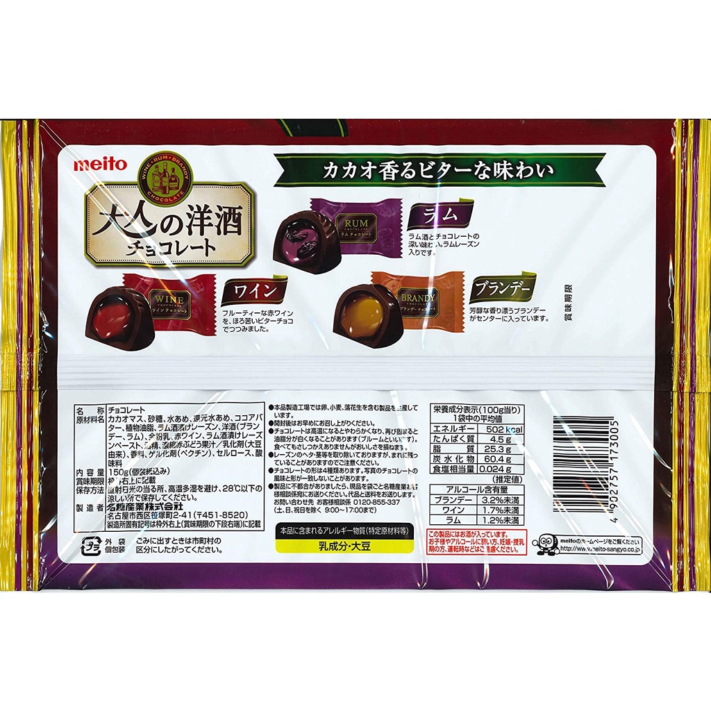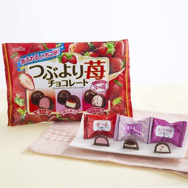 Kẹo Chocolate Meito các vị Nhật Bản, Socola vị dâu, 5 vị và r.vang - Ribeto Gyomu