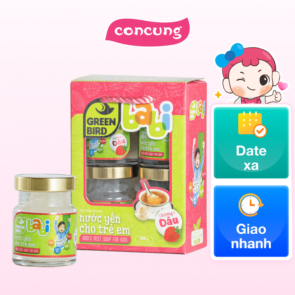 Lốc Green Bird - Babi Nước Yến Cho Trẻ Em Hương Dâu - (4 hũx72gr)