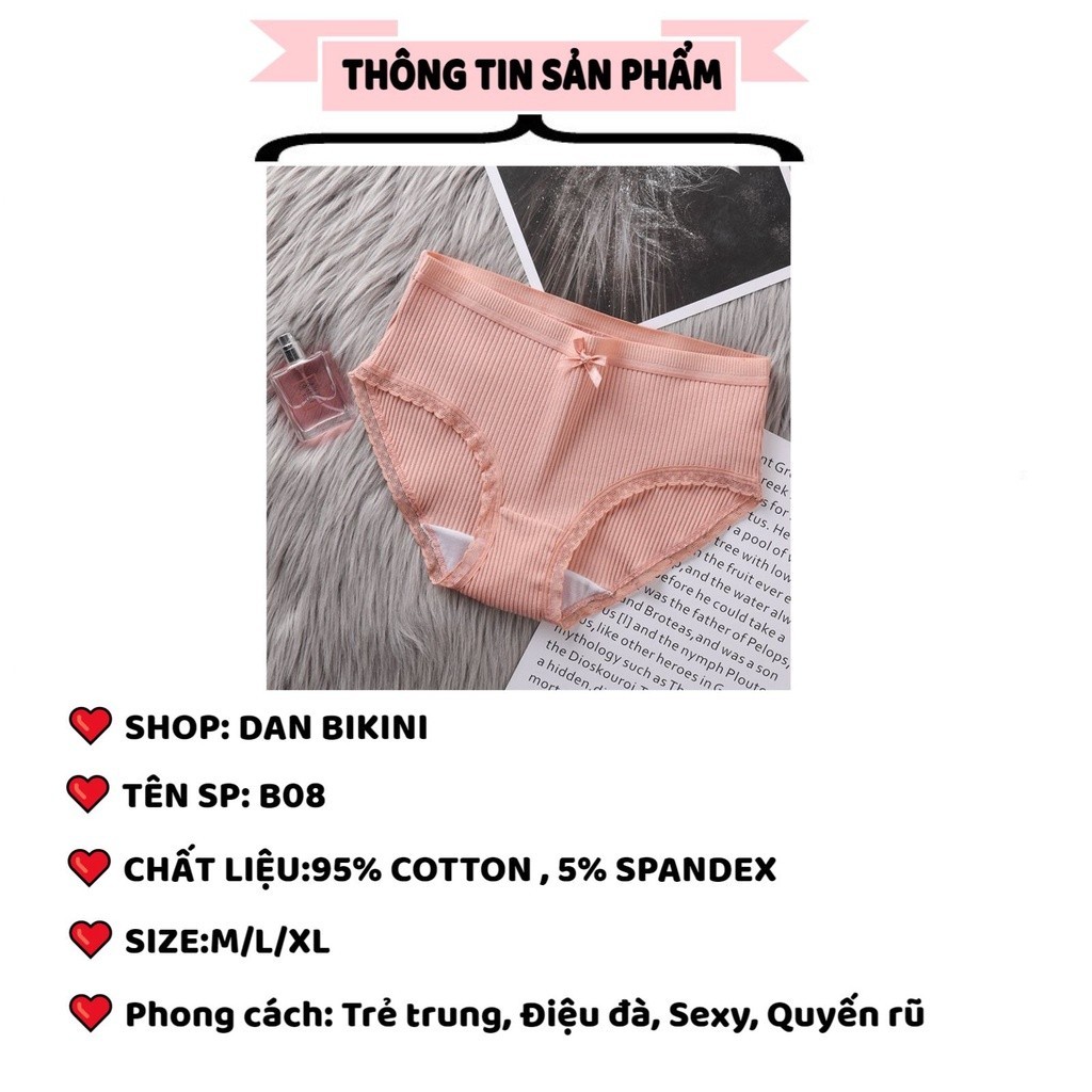 Quần Lót Nữ cotton gân tăm viền ren siêu mềm mịn thoáng mát MÃ B08