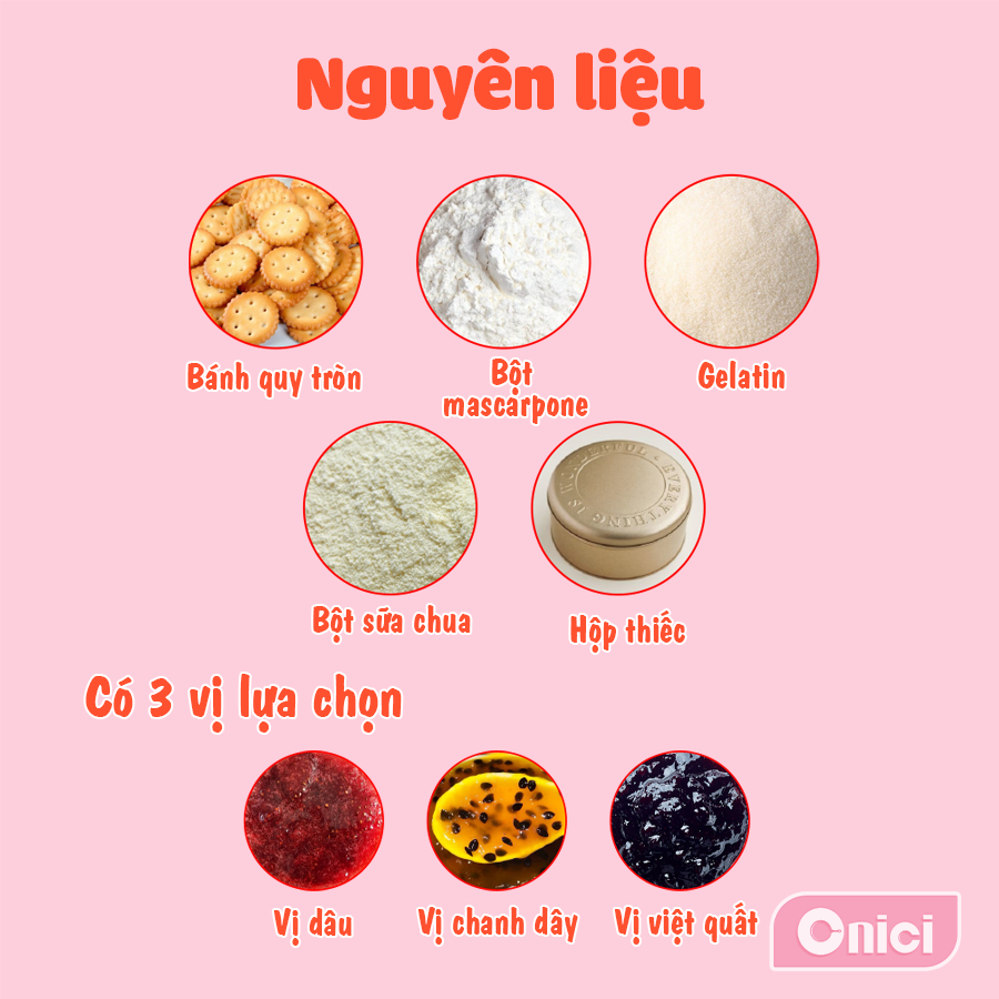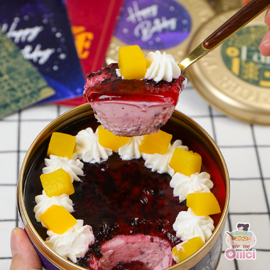 Set làm bánh mousse HỘP THIẾC 3 vị dâu, việt quất, chanh dây tự chọn ONICI thành phẩm 750ml/bánh