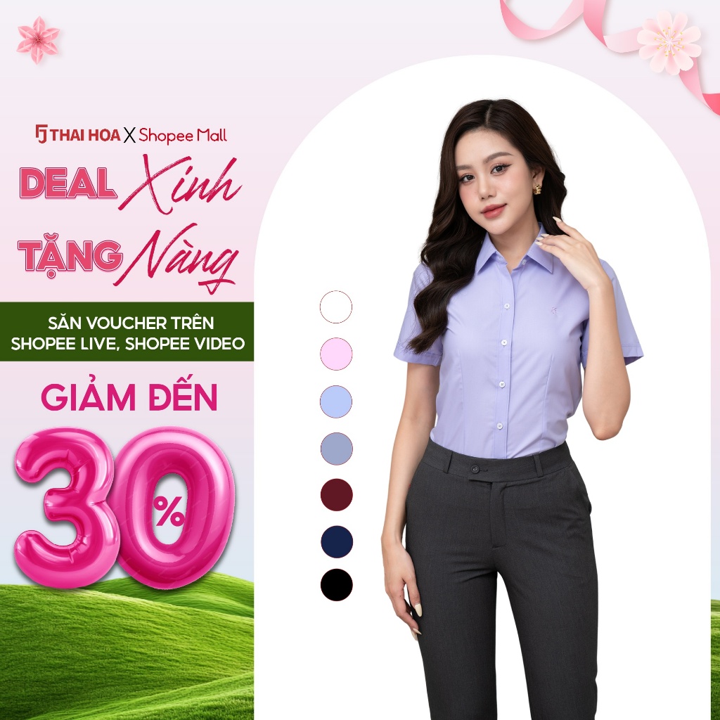Áo sơ mi ngắn tay ASW0301-R10 chất liệu sợi tre trơn các màu form ôm Thái Hòa