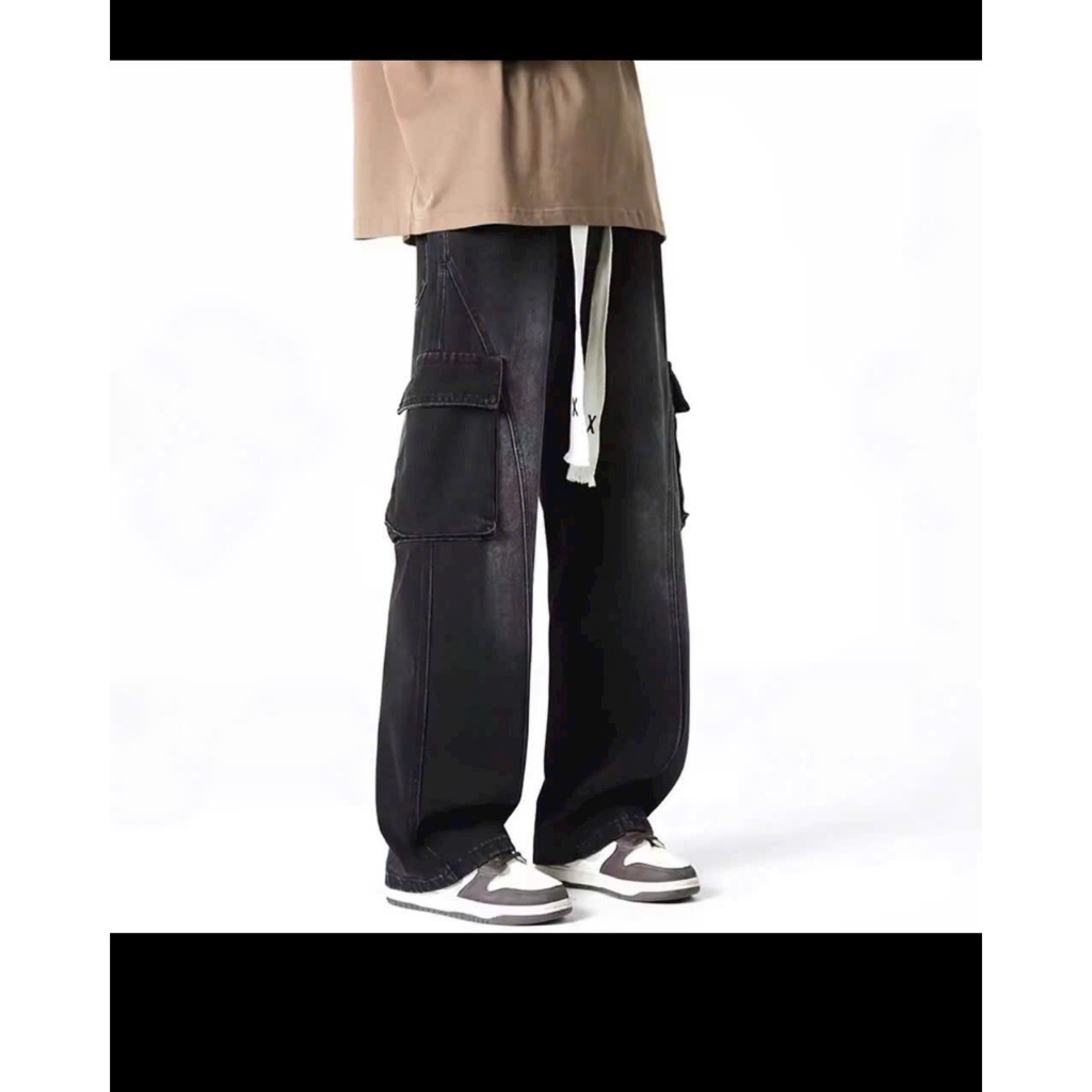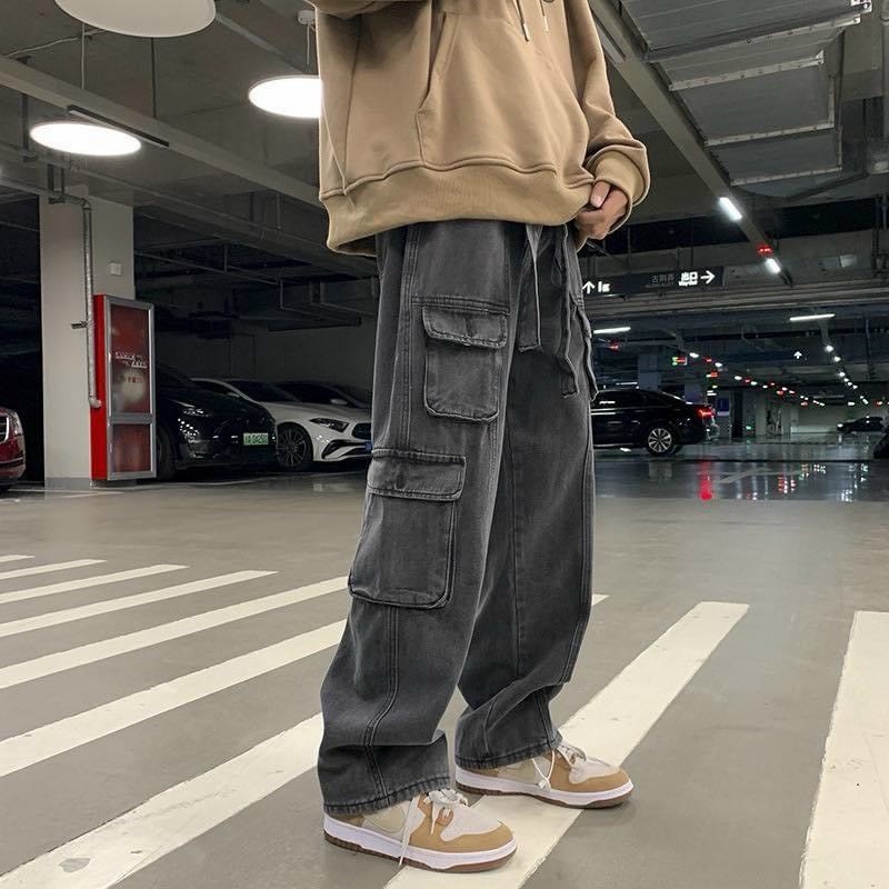 Quần Jean Suông Túi Hộp Ống Rộng Unisex Nam Nữ