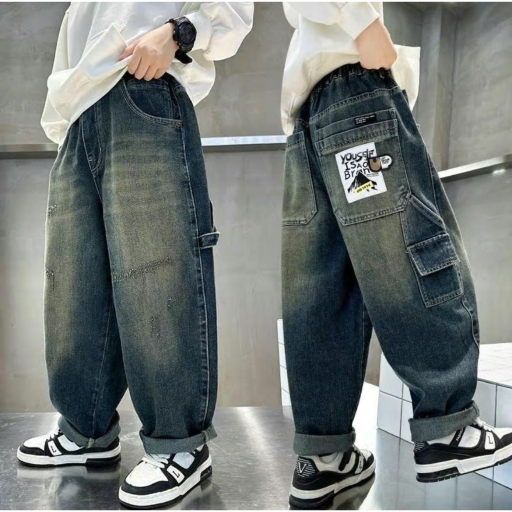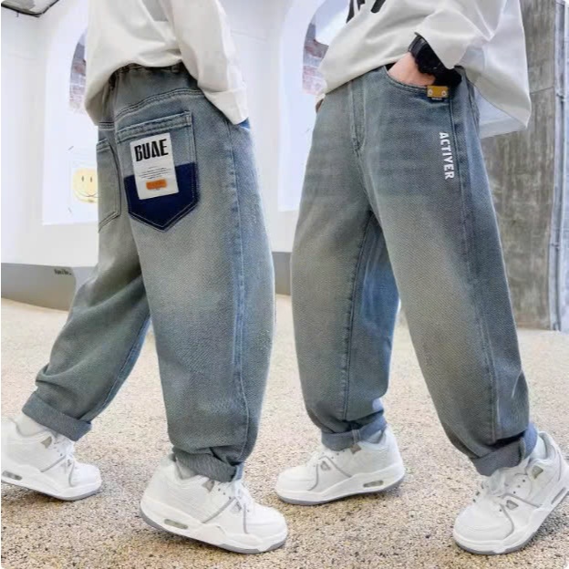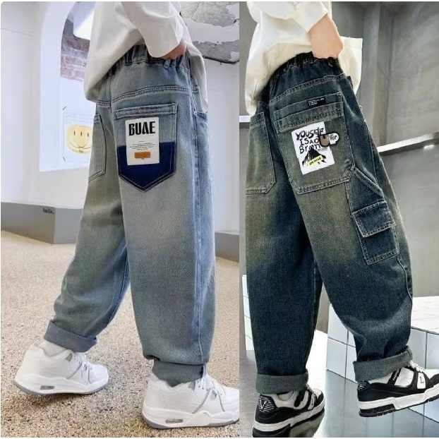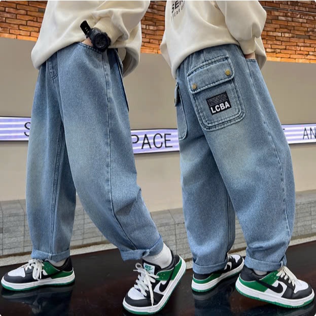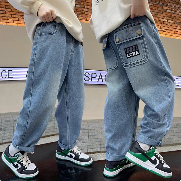 [JH1 15-58kg] Quần Jeans Baggy dáng rộng cho bé Trai, phong cách cá tính cho bé, Chất Jean mềm mát. Hàng mới 2025.