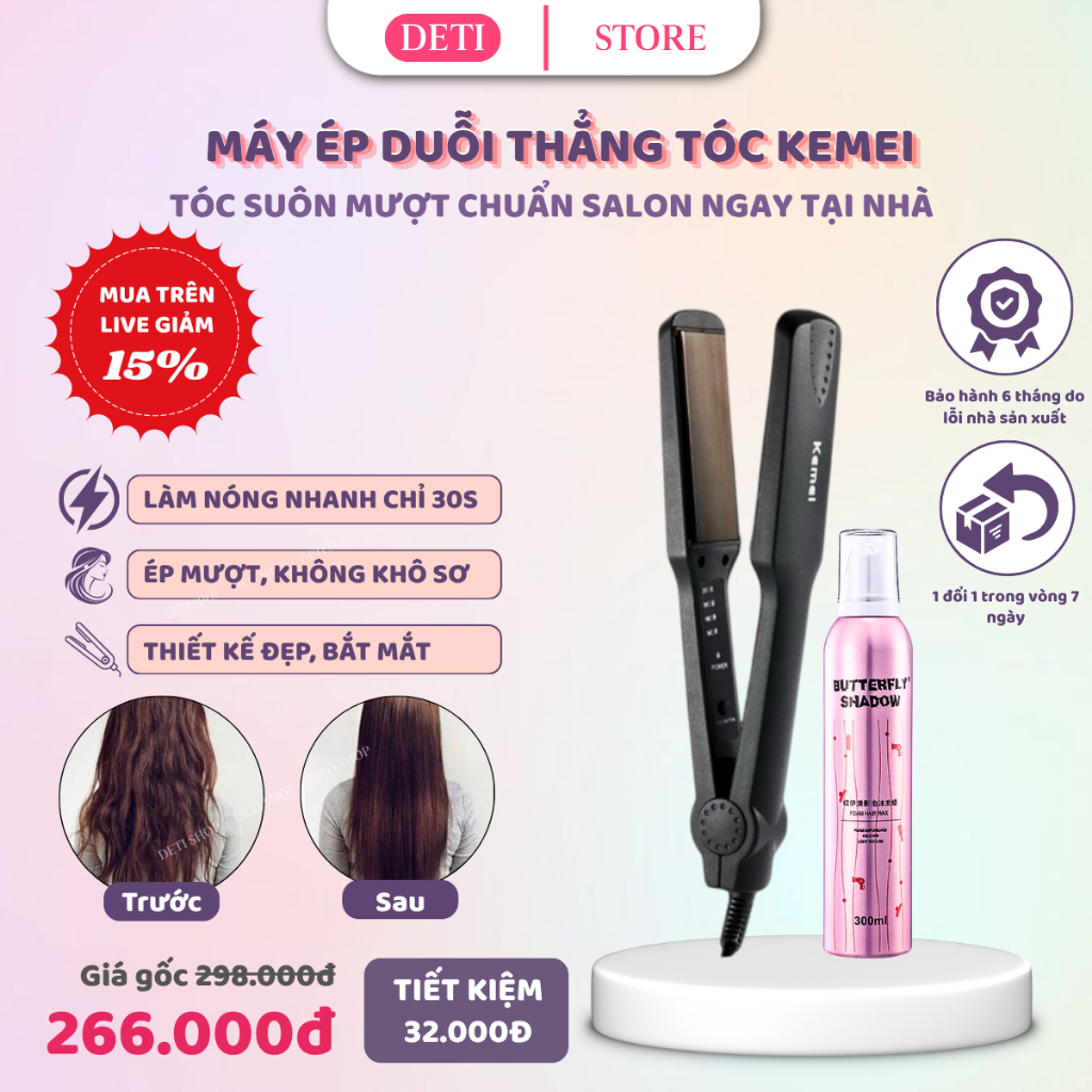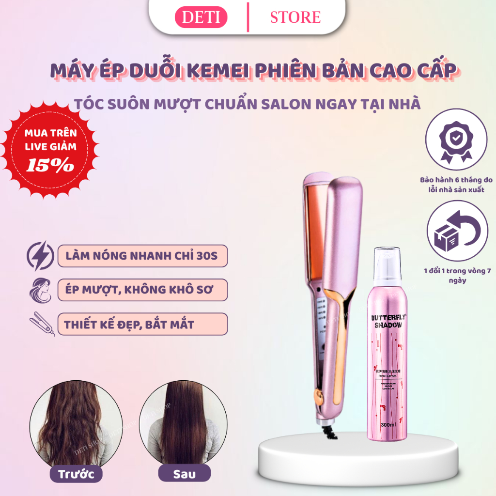 Máy Duỗi Tóc - Ép Tóc - Là Tóc - Uốn Cụp tạo kiểu MLT03 7Days.Beautify 4 Mức Nhiệt Điều Chỉnh Không Khô Sơ Tóc DETI