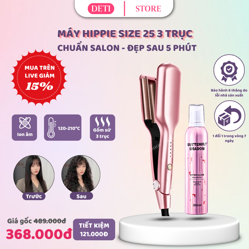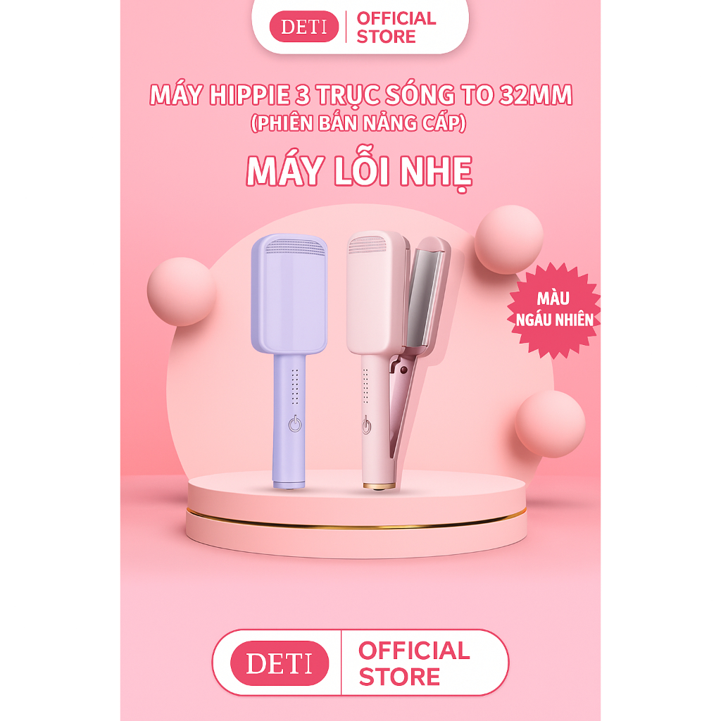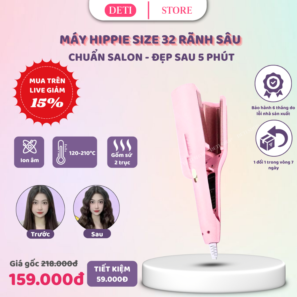 Máy Uốn Tóc Xoăn Sóng Nước Hippie 32 Thiết Kế 3 Trục Gốm Sứ Ceramic Cao Cấp, Máy Làm Xoăn Sóng Nước Chỉnh Nhiệt Tạo Kiểu