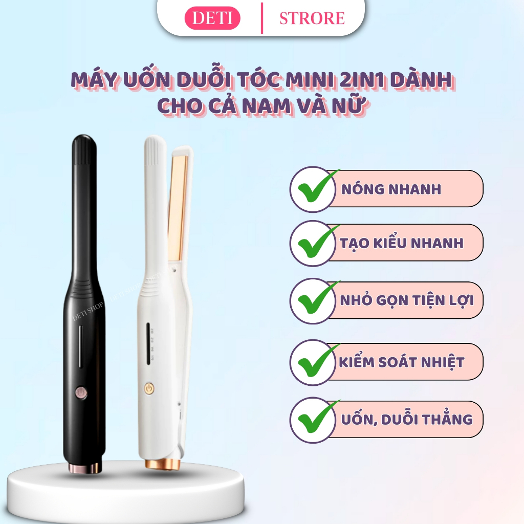 Máy duỗi tóc nam nữ, tóc tém, máy uốn tóc nam nữ bản nhỏ cao cấp có chỉnh nhiệt bản kẹp 1cm DETI