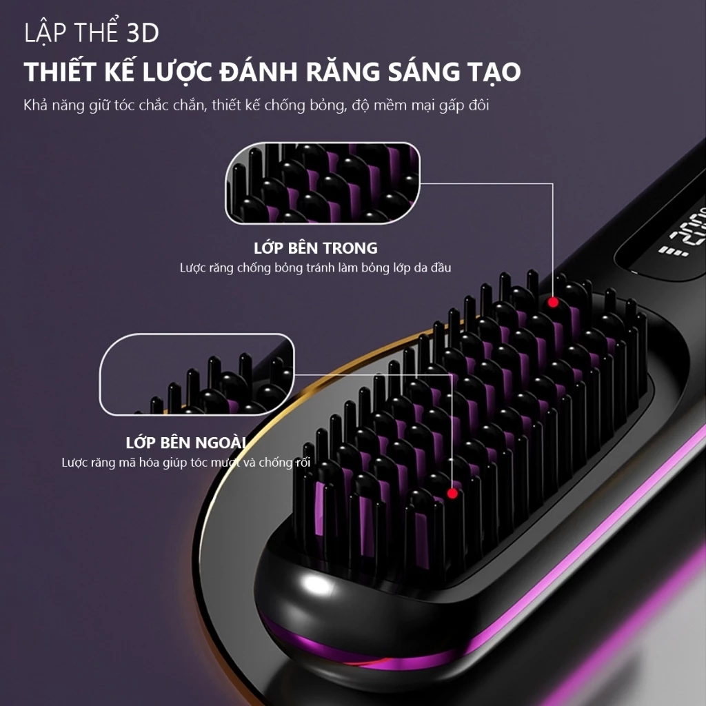 Lược Chải Tóc Điện Ion Âm DETI Lược Duỗi Thẳng, Bảo Vệ Tóc Cao Cấp Với 50 Triệu Ion Âm