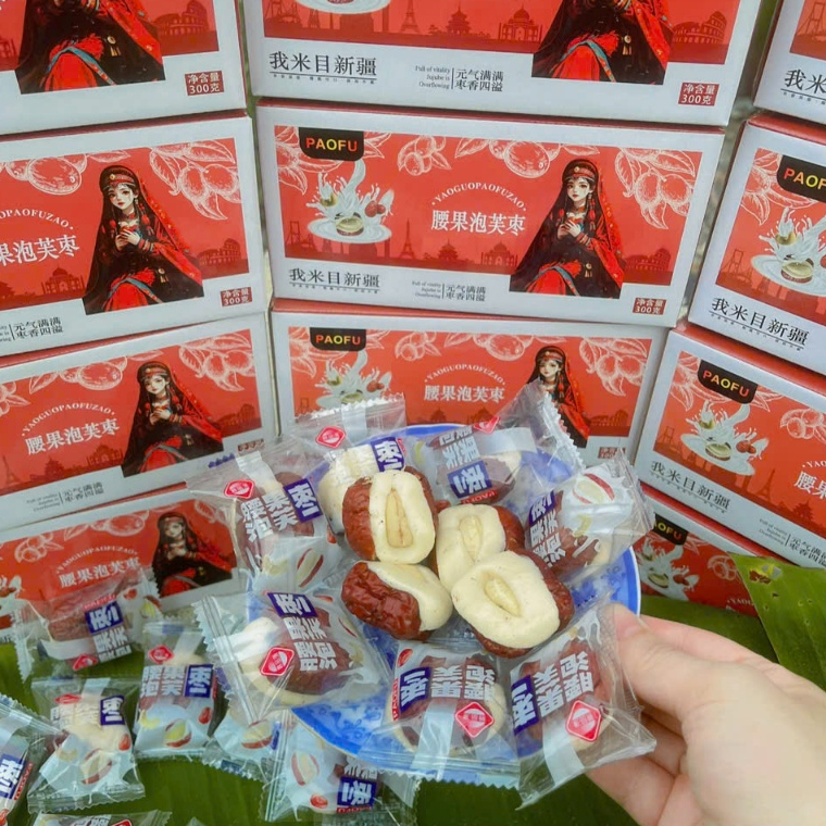 [300gam] Táo đỏ Tân Cương kẹp hạt điều sữa lạc đà nougat PAOFU -ăn vặt healthy ngon bổ rẻ