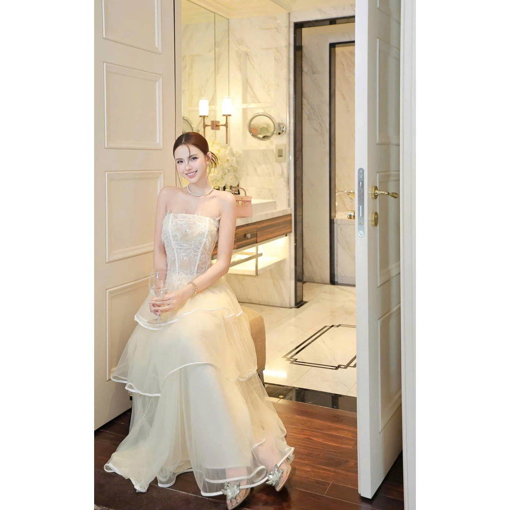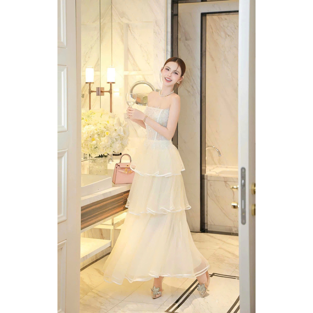 Đầm váy cup ngực dáng dài xòe 3 tầng
