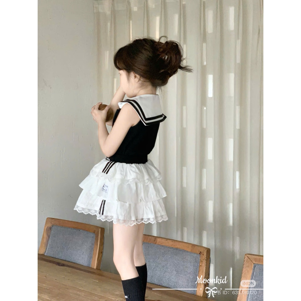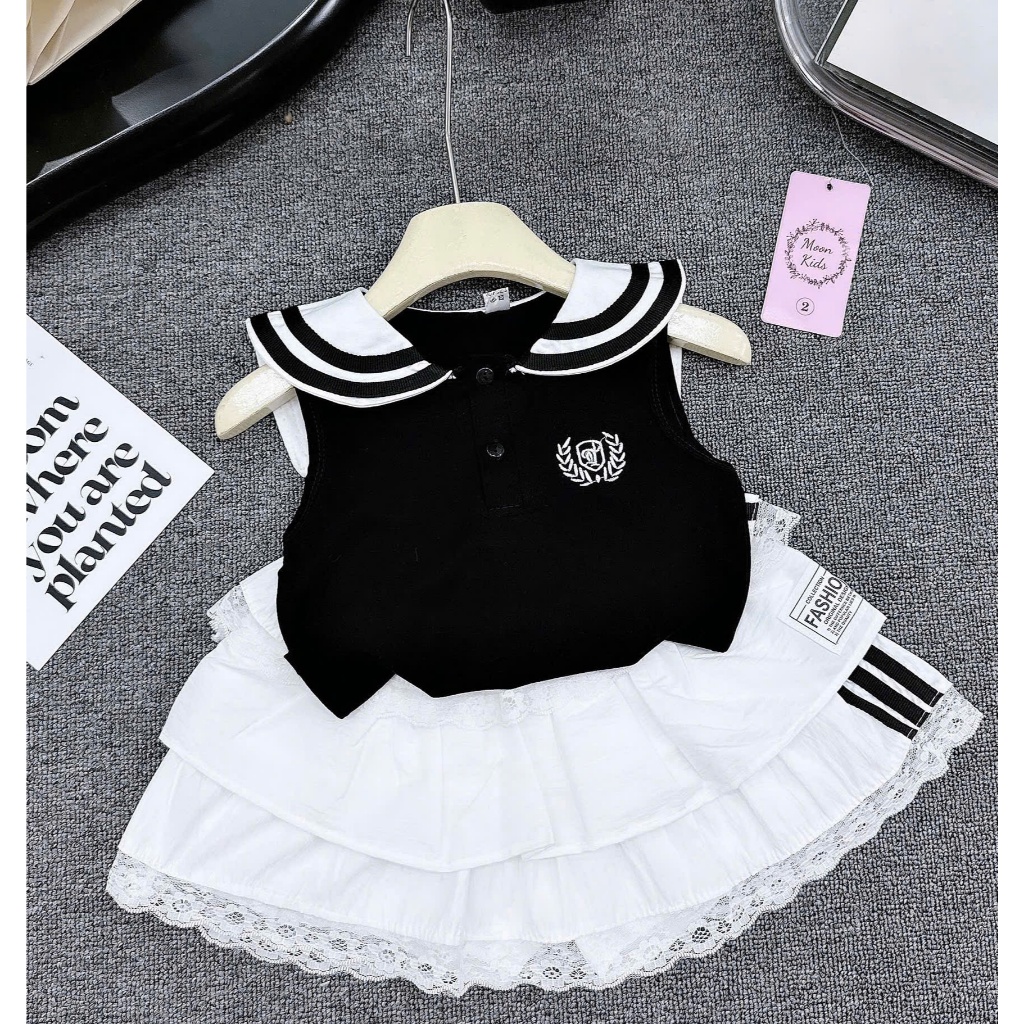 Set váy bé gái, đồ bộ bé gái, set áo kiểu Peter Pan mix chân váy bèo 3 tầng phối ren bồng bềnh 8-26kg Bear Kids