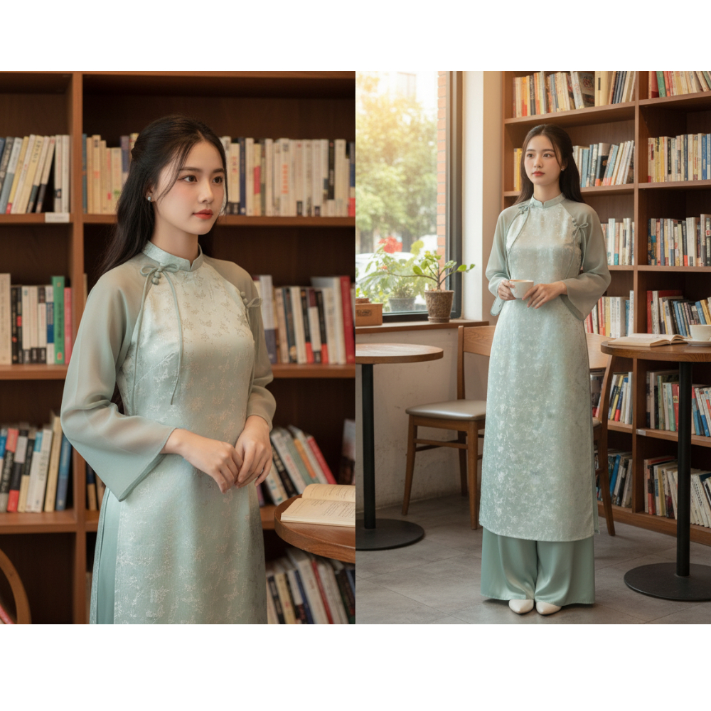 Áo Dài Dáng Suông THANH YÊN Vải Gấm Mềm Tay Voan Loe Nhẹ Nhàng Che Khuyết đểm tốt