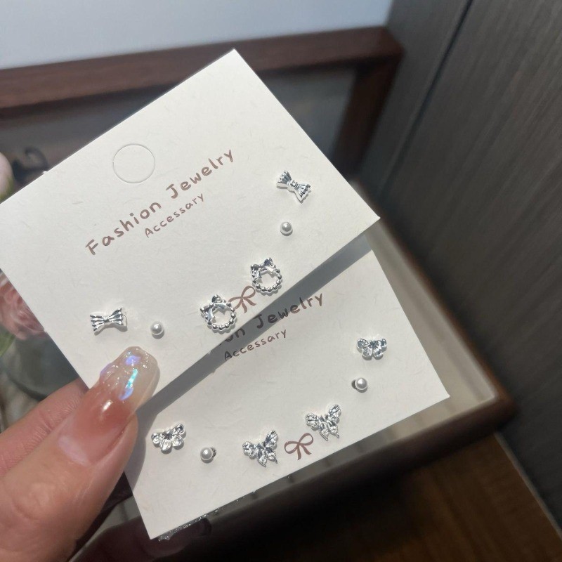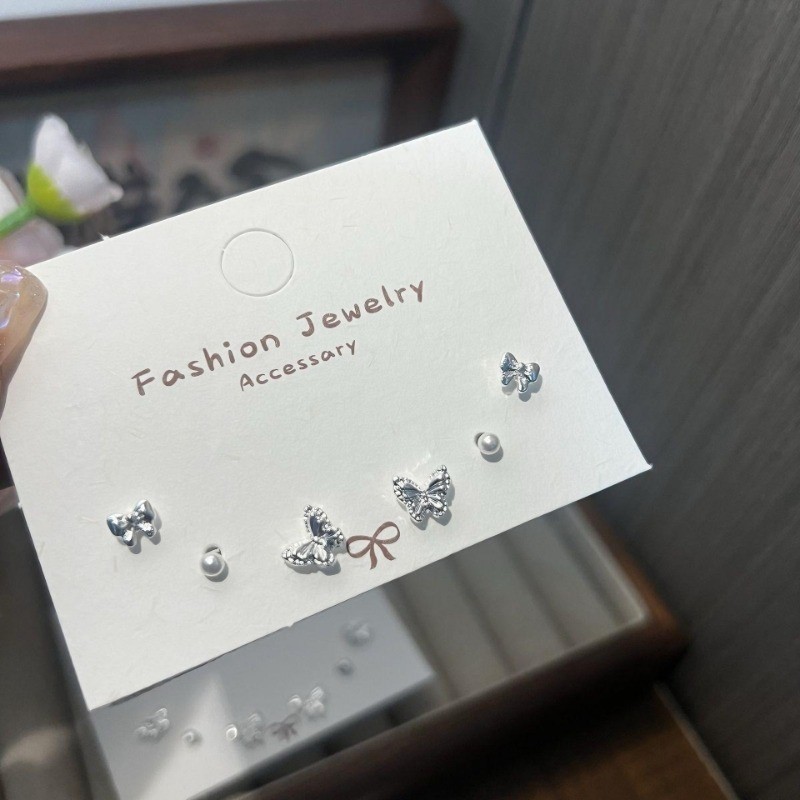 Mini Dễ Thương Bướm S925 Mạ Bạc Bông Tai Phụ Kiện 6 Cái / lốc