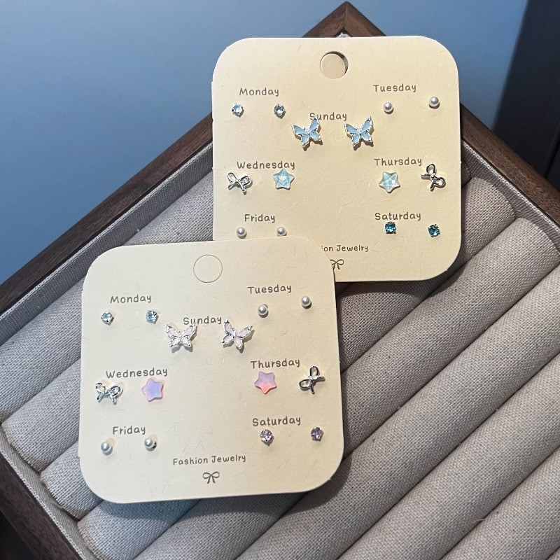14 Cái / lốc Thời Trang Bướm S925 Mạ Bạc 3D Hoa Tai Khóa Bông Tai Phụ Kiện
