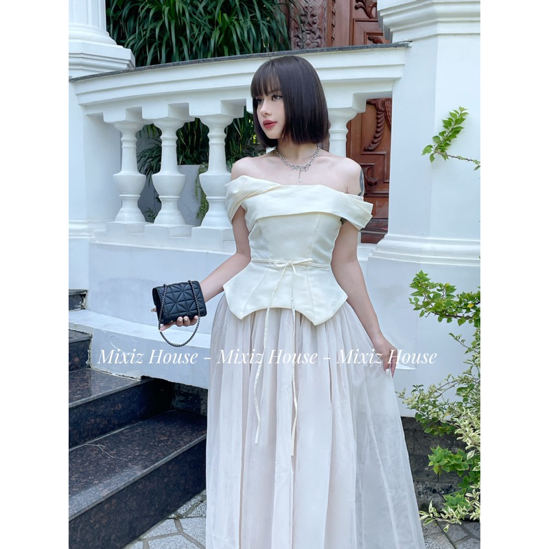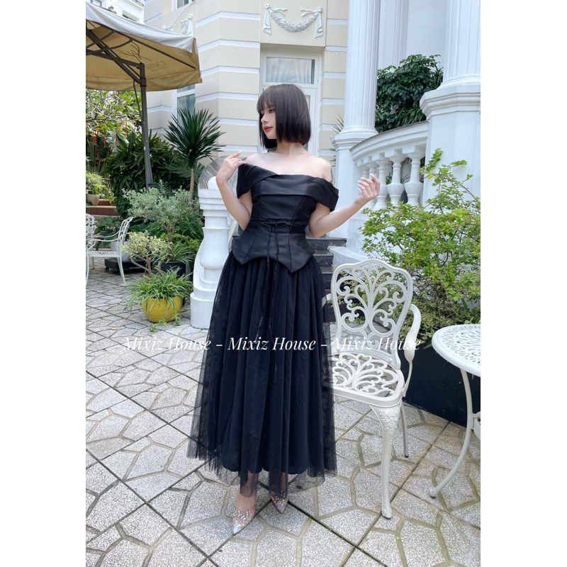 [CÓ BIGSIZE] Đầm xoè trễ vai cột eo phối tùng lưới Mixiz House