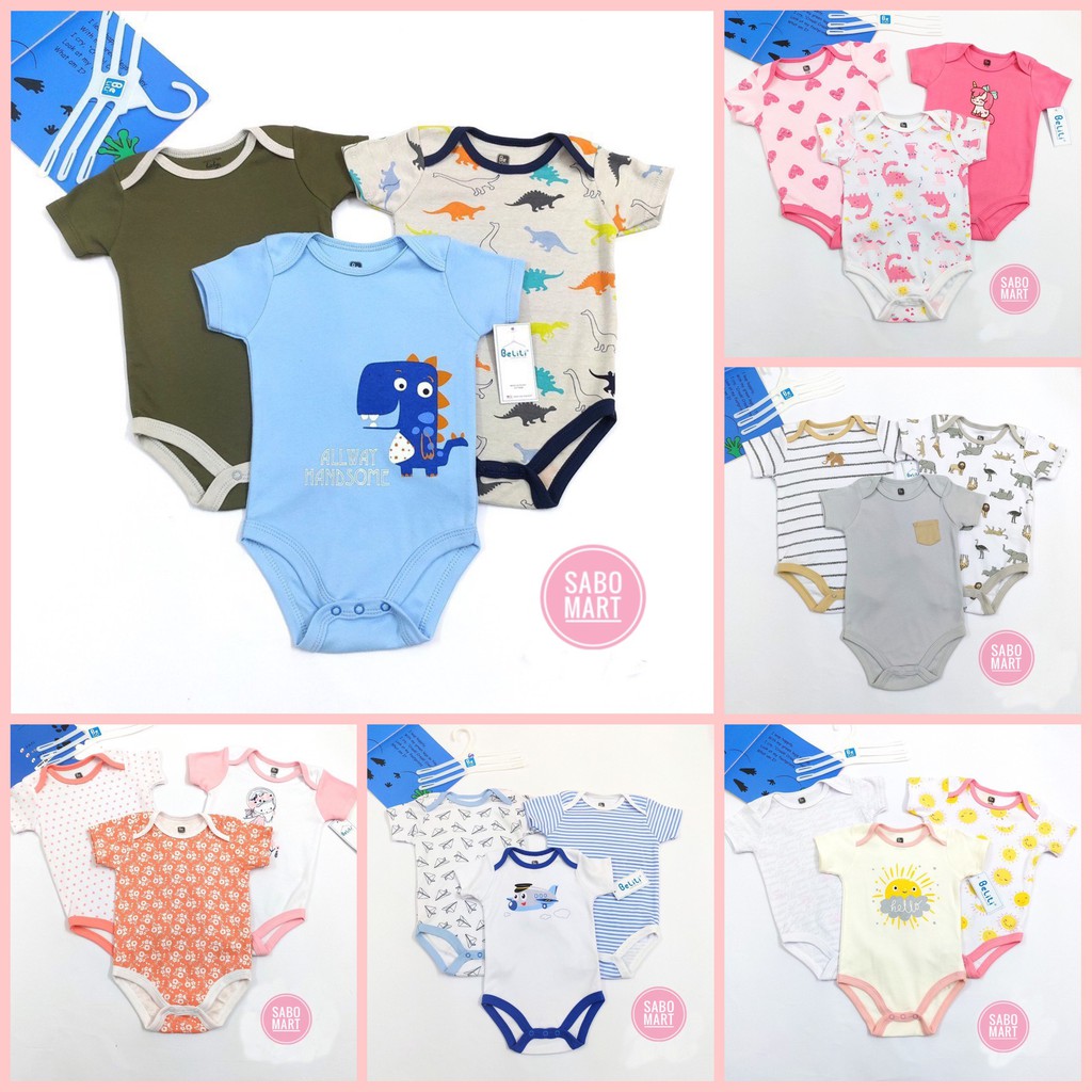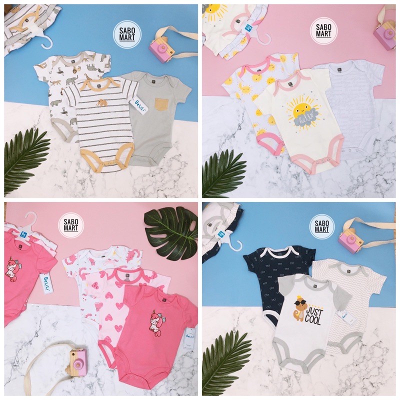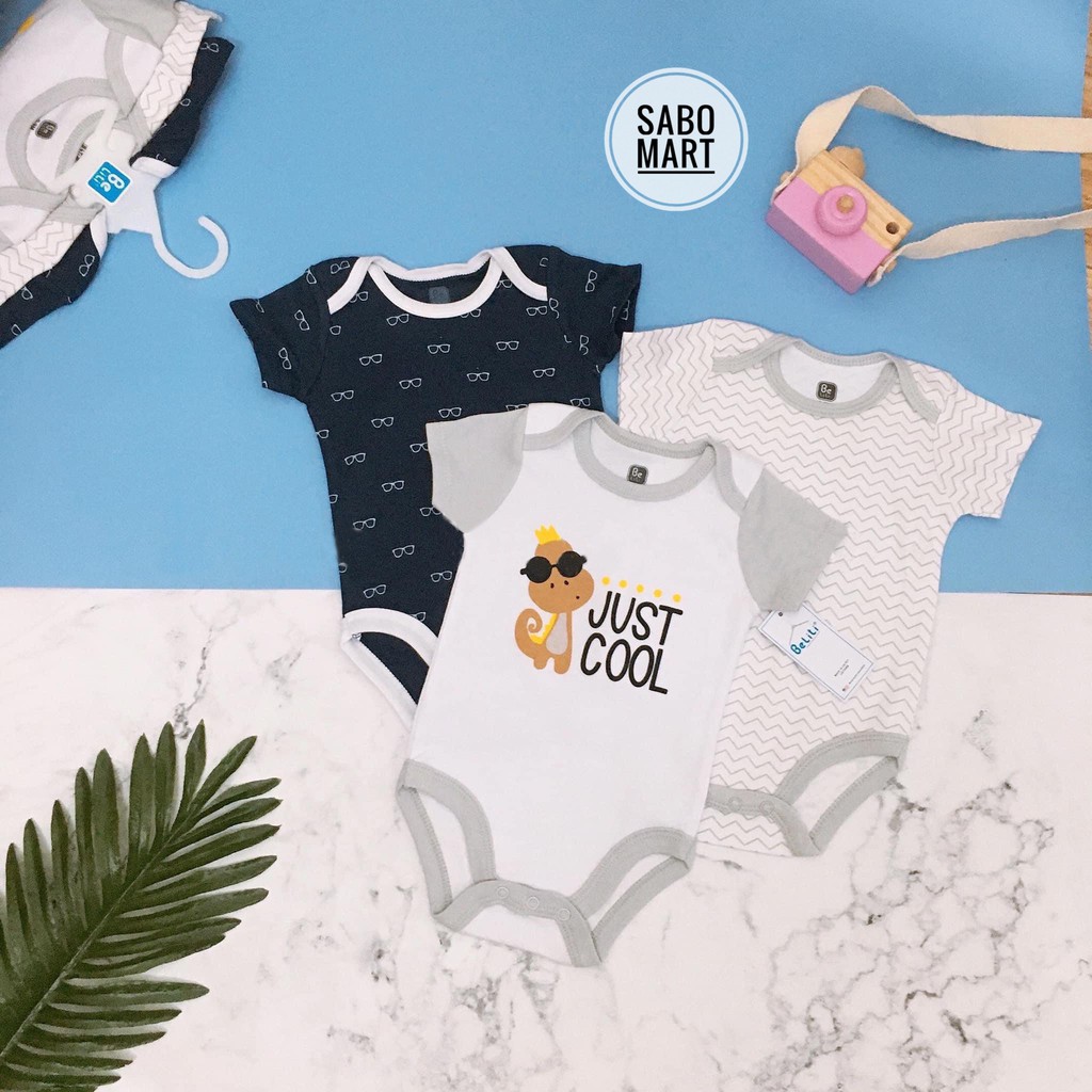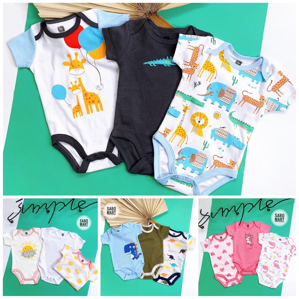 (XẢ LỖ) Set 3 Bodysuit Body Chip Cộc Tay Kèm Móc Hàng VN Xuất Dư Cho Bé Siêu Đẹp