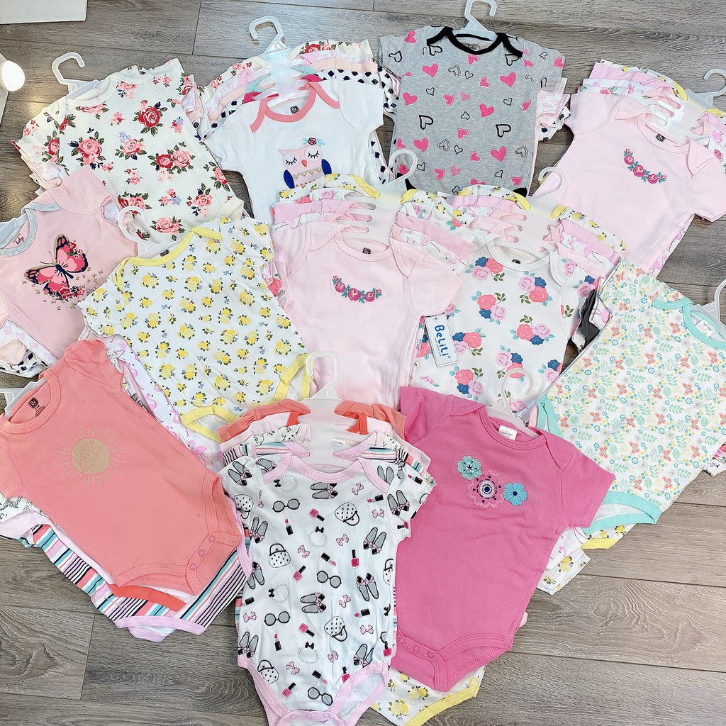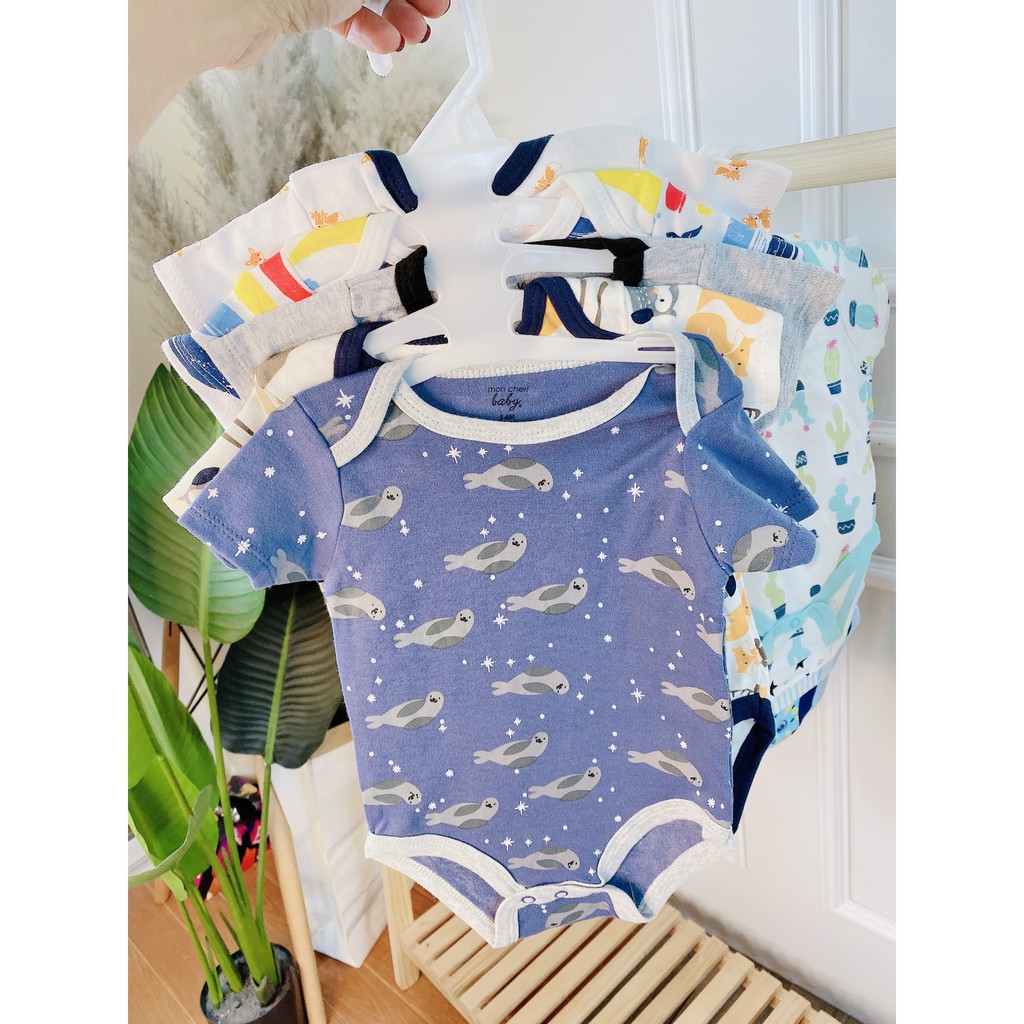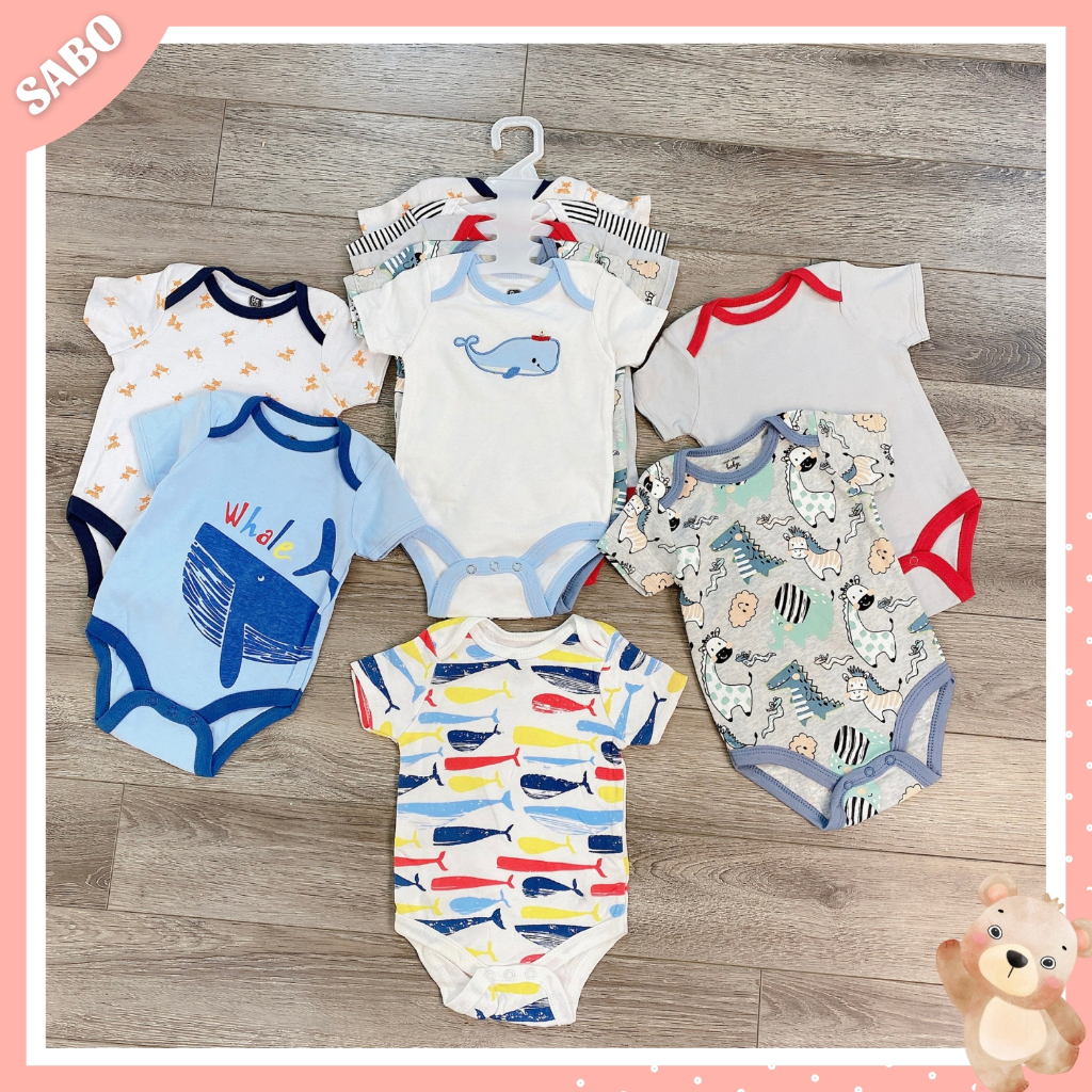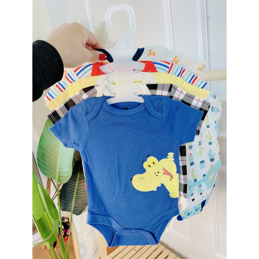 SET 5 Bodysuit Body Chip CỘC TAY Xuất Mỹ Cho Bé 0-12M Kèm Móc, Body Cộc Cho Bé Sơ Sinh