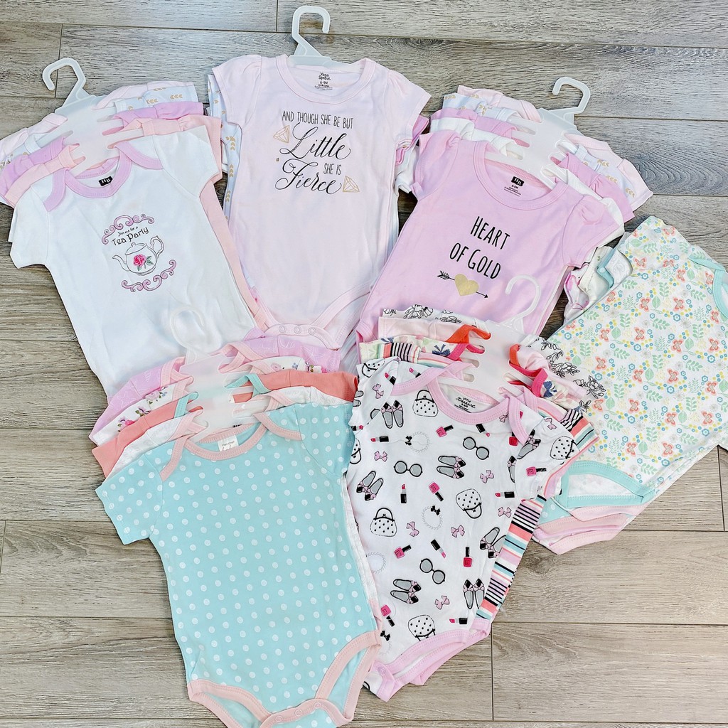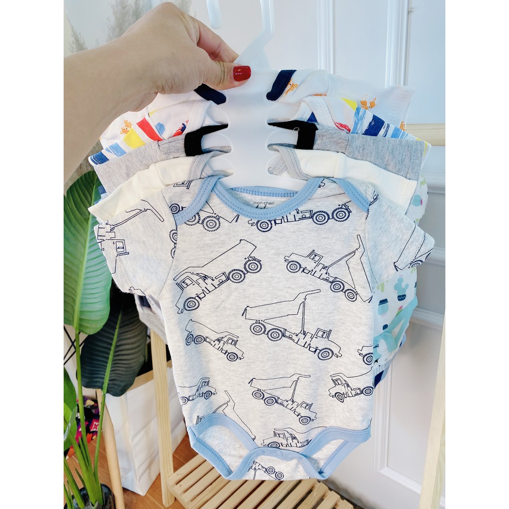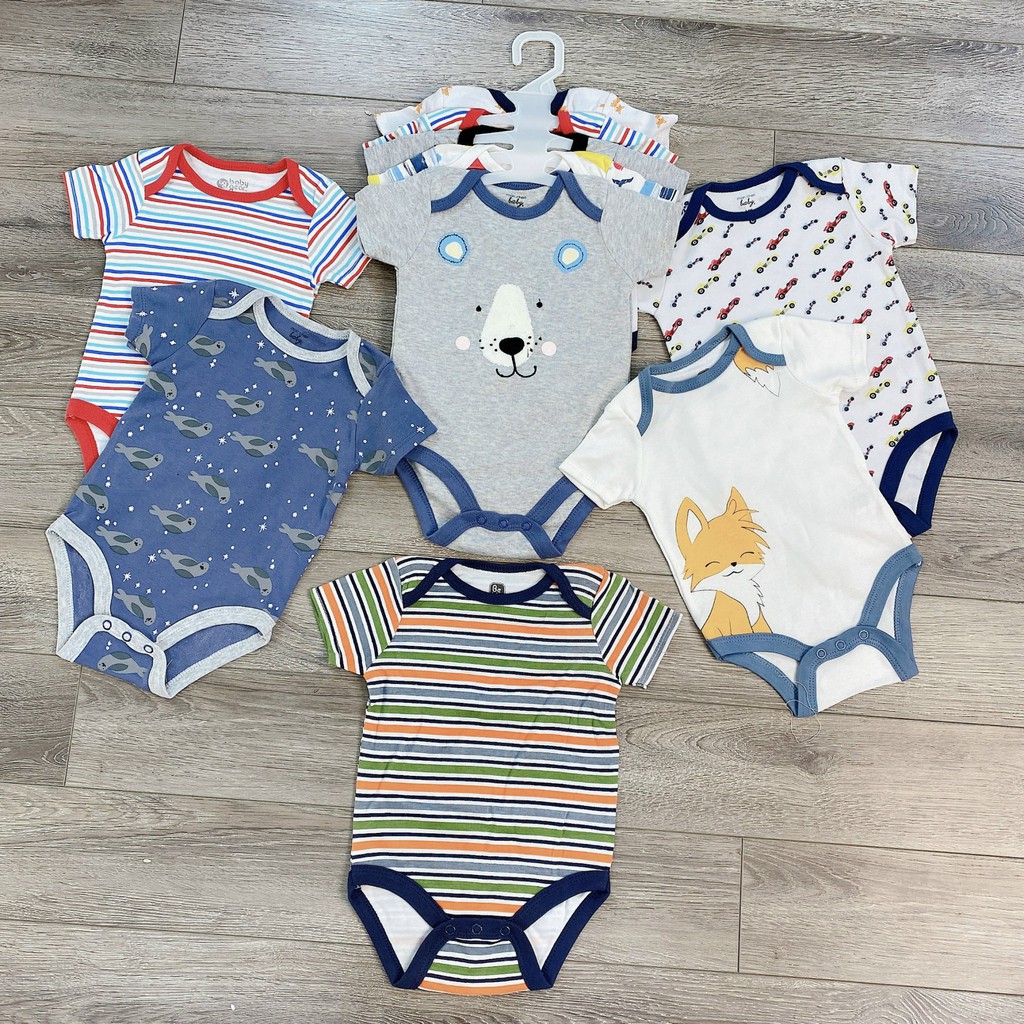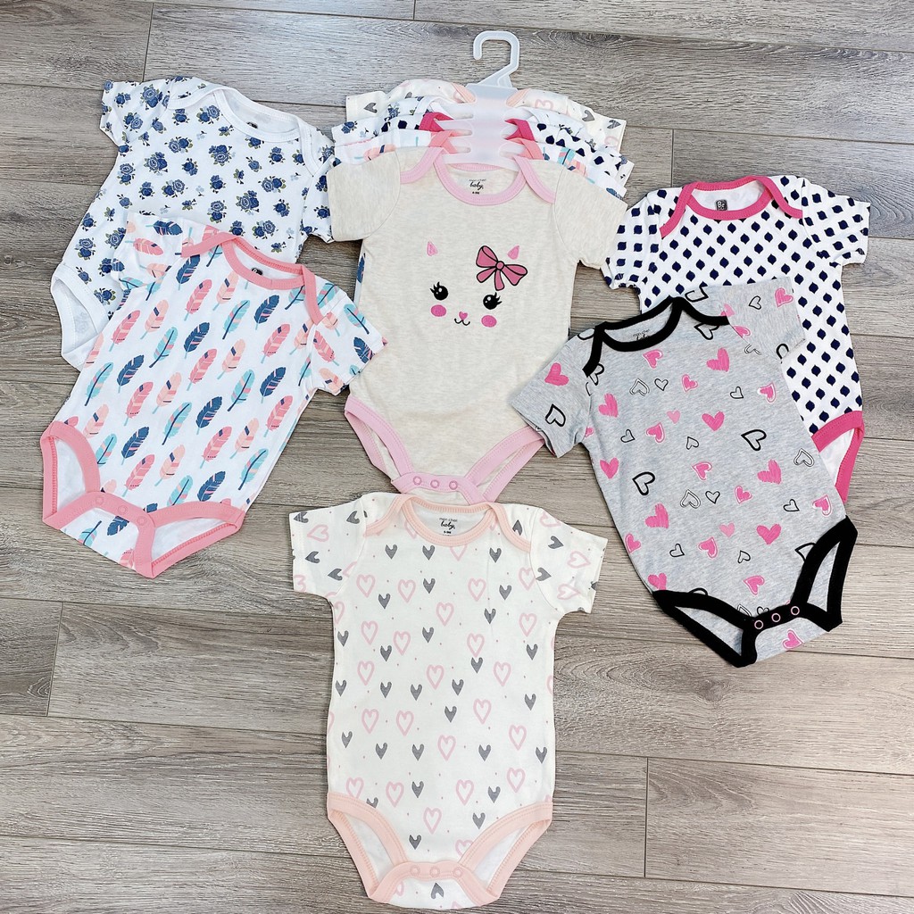 SET 5 Bodysuit Body Chip CỘC TAY Xuất Mỹ Cho Bé 0-12M Kèm Móc, Body Cộc Cho Bé Sơ Sinh