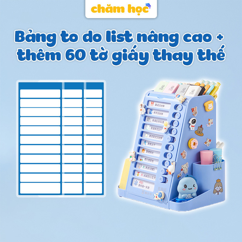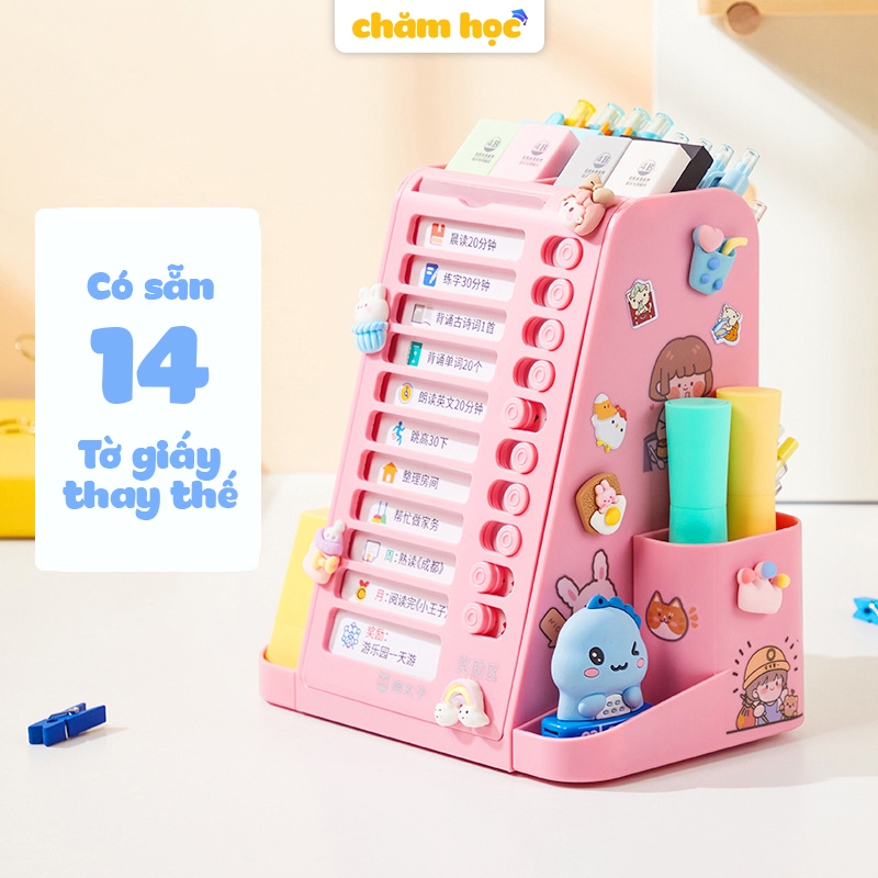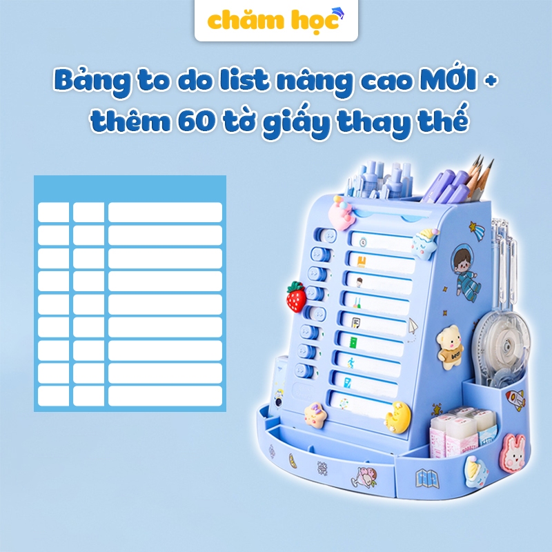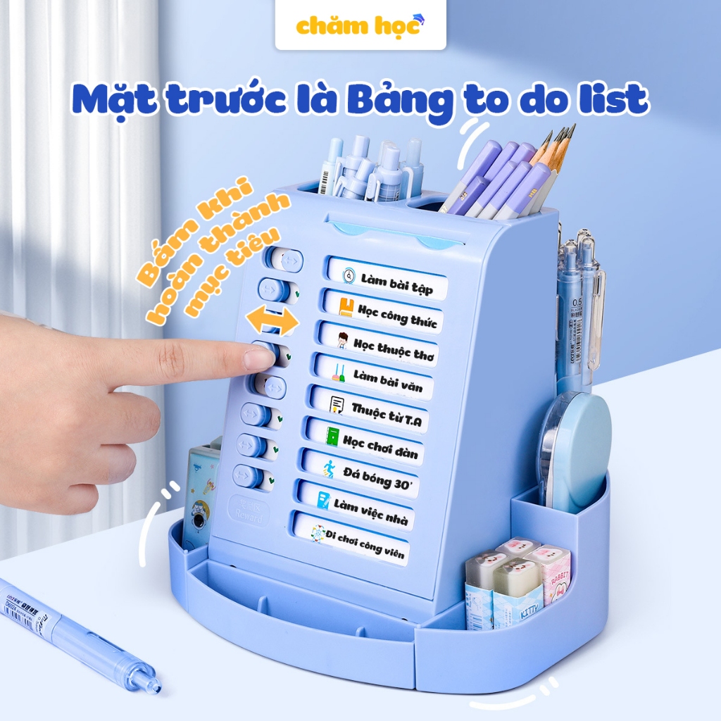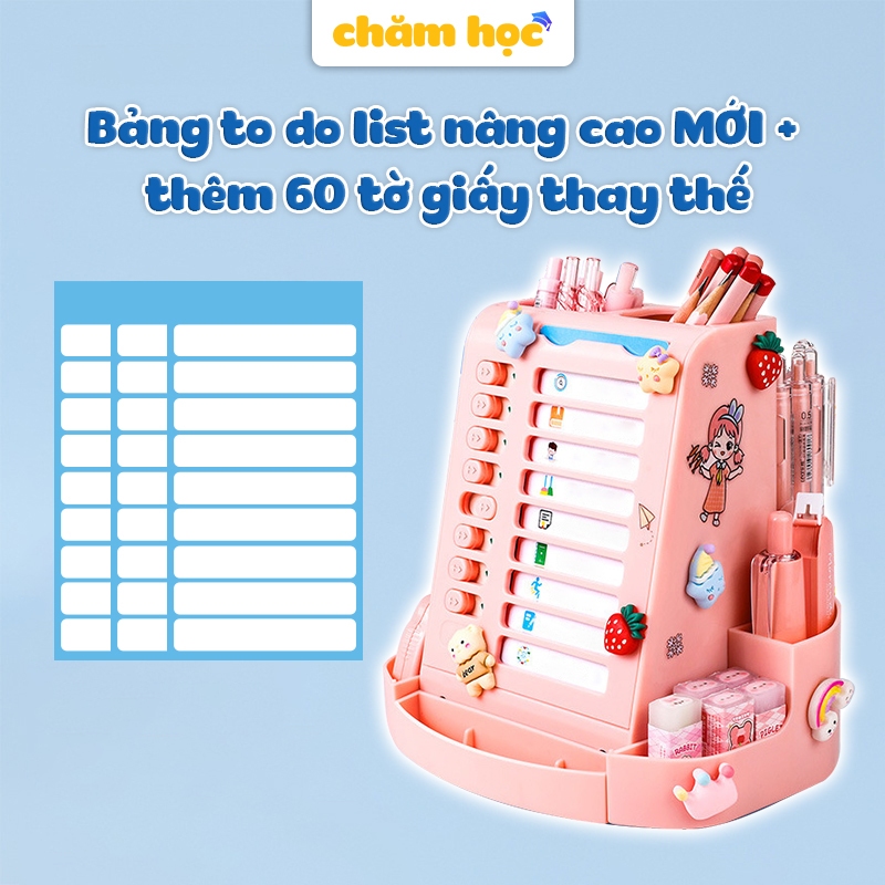 Bảng to do list cho bé kiêm hộp đựng bút xoay 360 độ, chất liệu nhựa cao cấp phù hợp với học sinh - Chăm Học Store