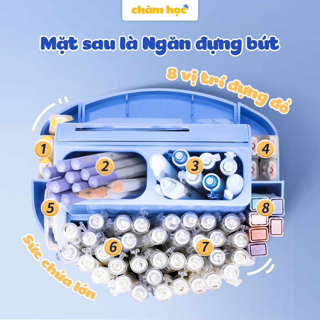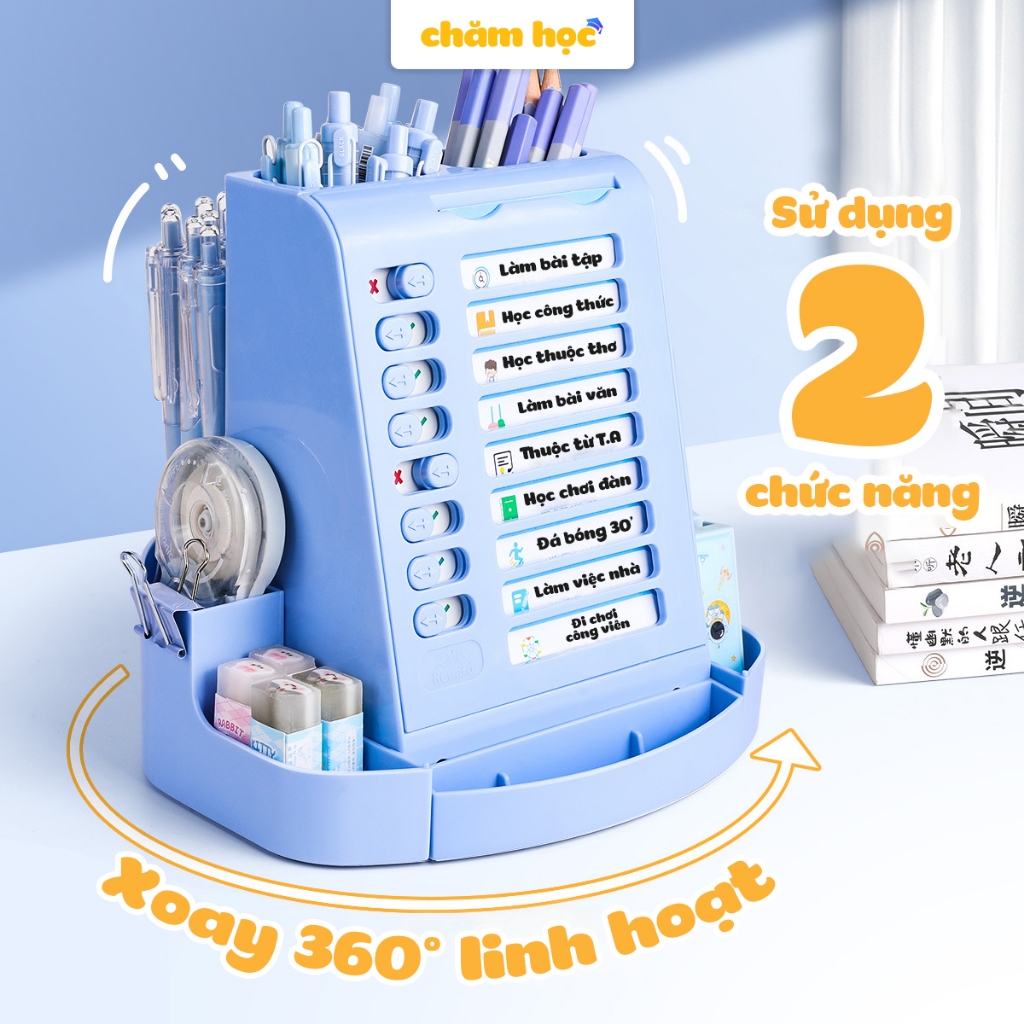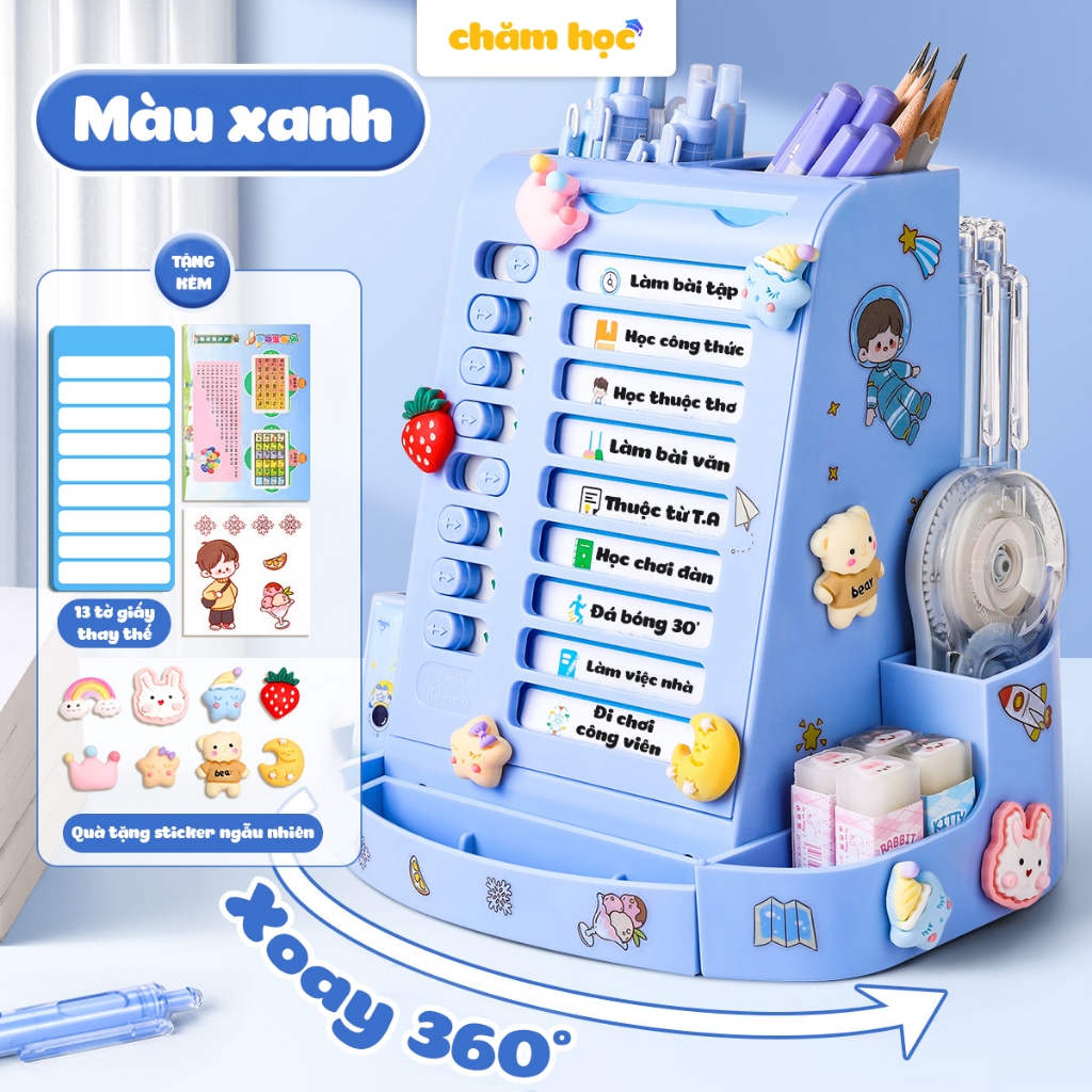 Bảng to do list cho bé kiêm hộp đựng bút xoay 360 độ, chất liệu nhựa cao cấp phù hợp với học sinh - Chăm Học Store