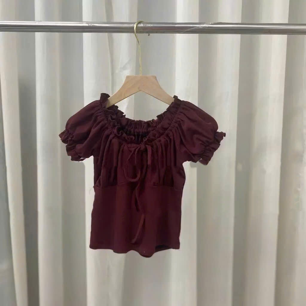 Áo croptop trễ vai tiểu thư nơ cổ ôm body mặc được 2 kiểu