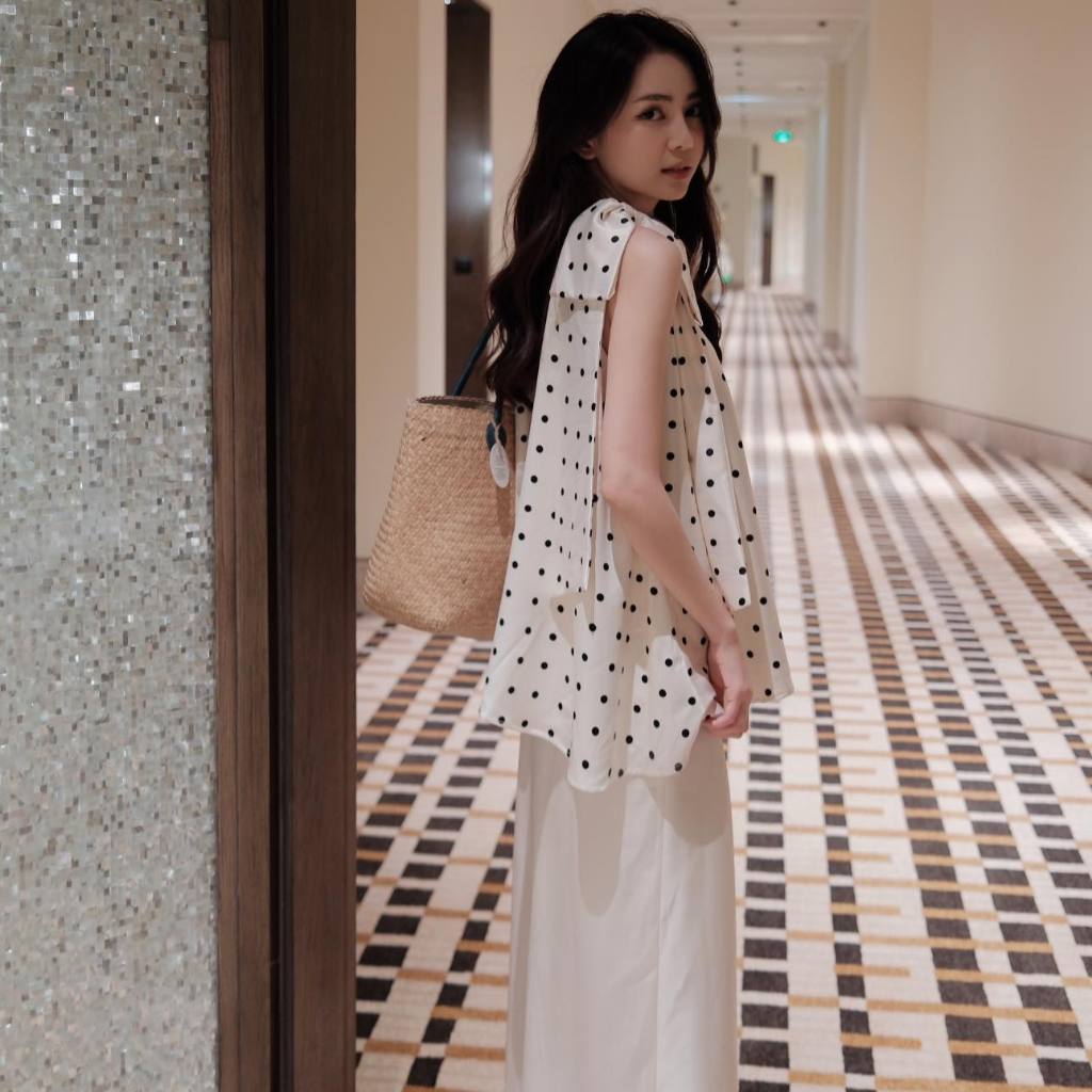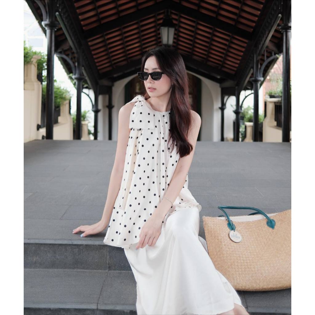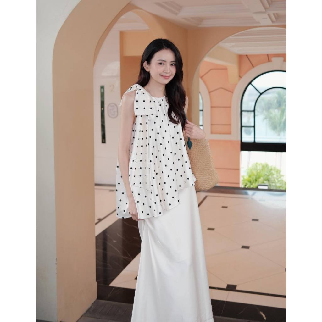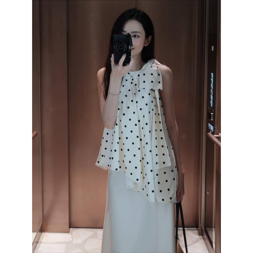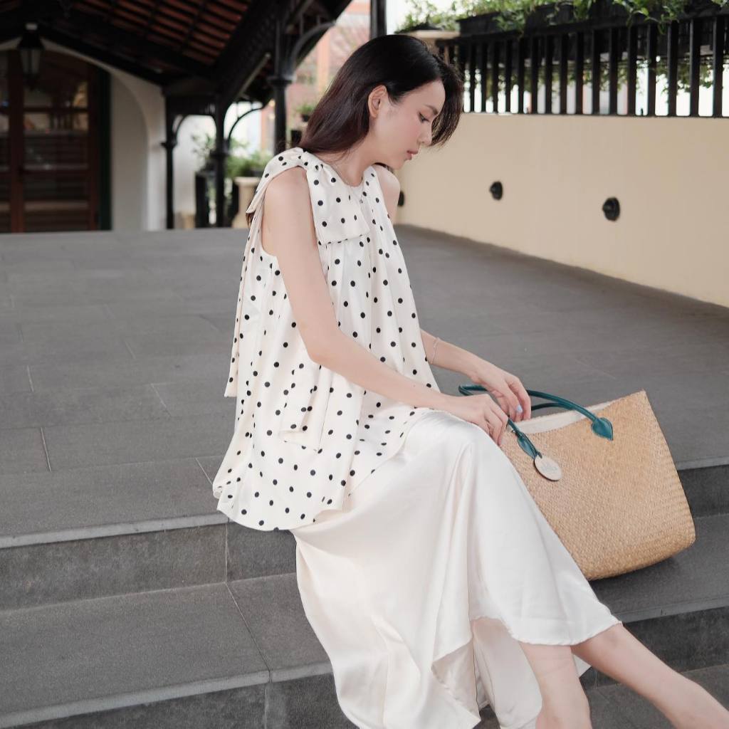 CHARM TOP - Áo Nữ Cổ Yếm Chấm Bi Lụa Các Hàn Cùng Chân Váy Lụa Tiểu Thư Nhẹ Nhàng SANJOLI AO010