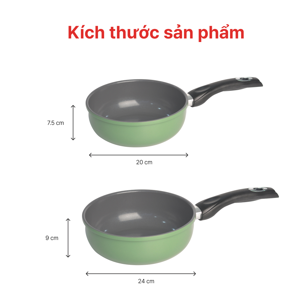 Chảo sâu lòng chống dính đáy từ HAPPYCOOK Ceragreen, Chống dính PFOA free, 20, 24cm, CGWP-20, 24IH